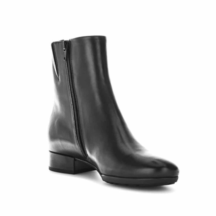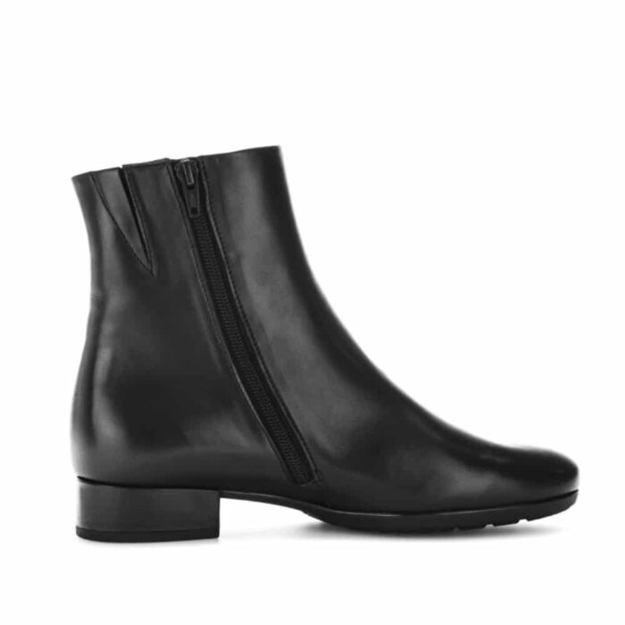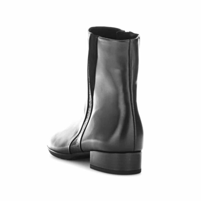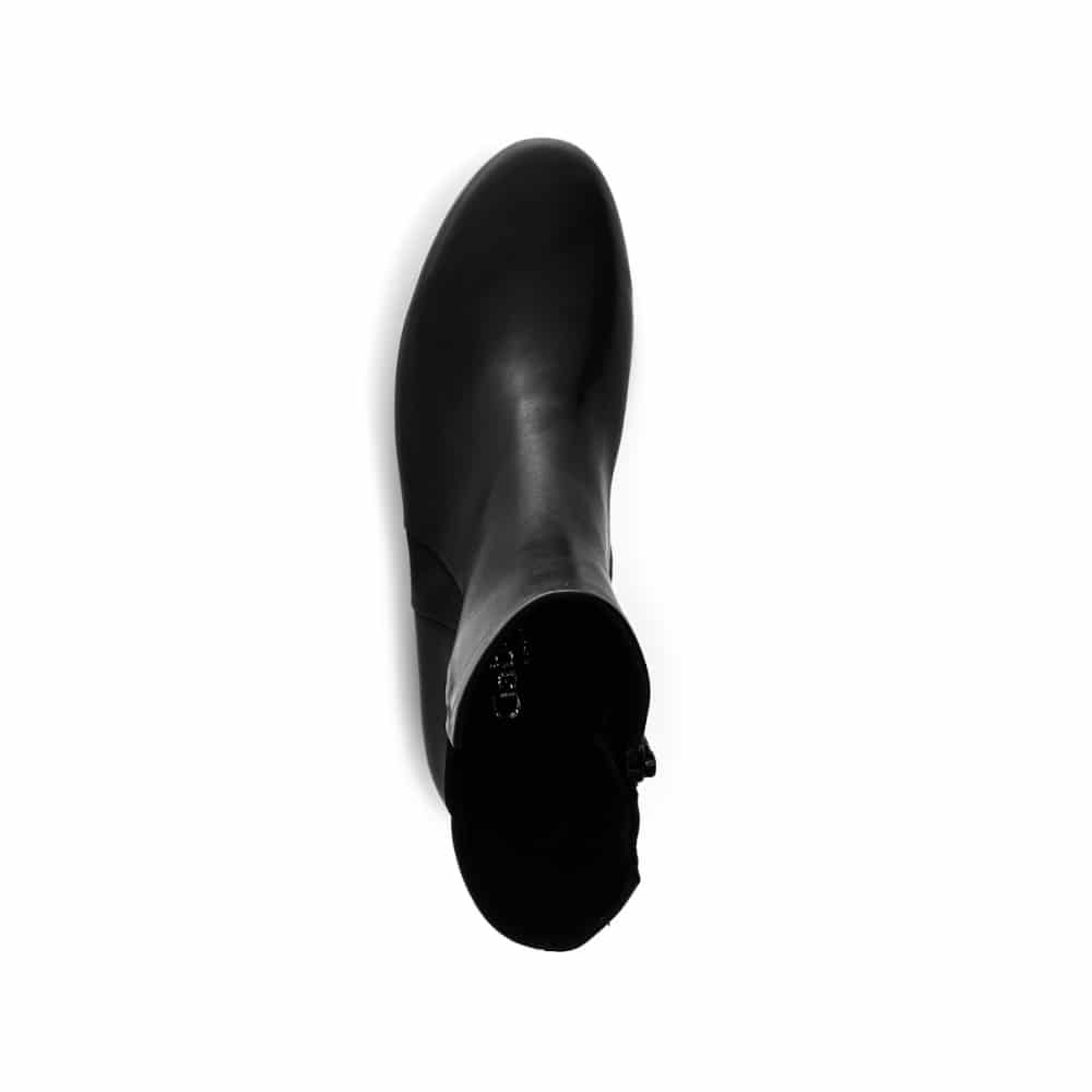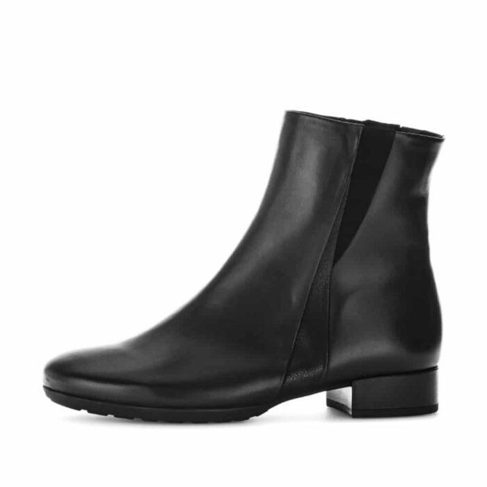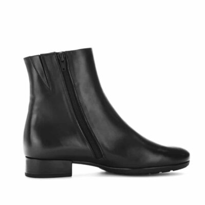 Gabor støvle til dame i sort. Støvlens indvendige er beklædt med let microfiber, og dens behagelige pasform er prioriteret med en rummelig vidde H. Den bløde gummisål er udstyret med Aircube-teknologi, der tilføjer ekstra komfort, og støvlens hæl måler 2,5 cm i højden. Med en skafthøjde på 14 cm bidrager dette til støvlens harmoniske proportioner. Denne klassiske, lette støvle i sort er udstyret med en praktisk lynlås på den ene side og har en overdel lavet af 100% ægte skind.