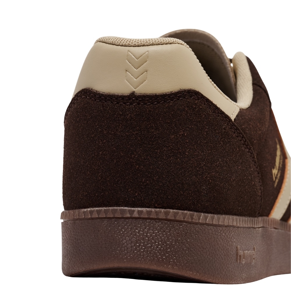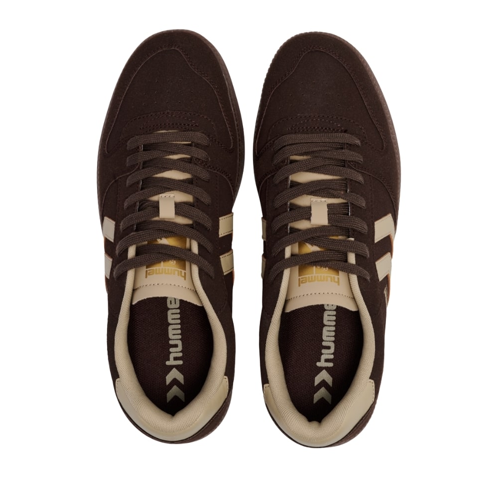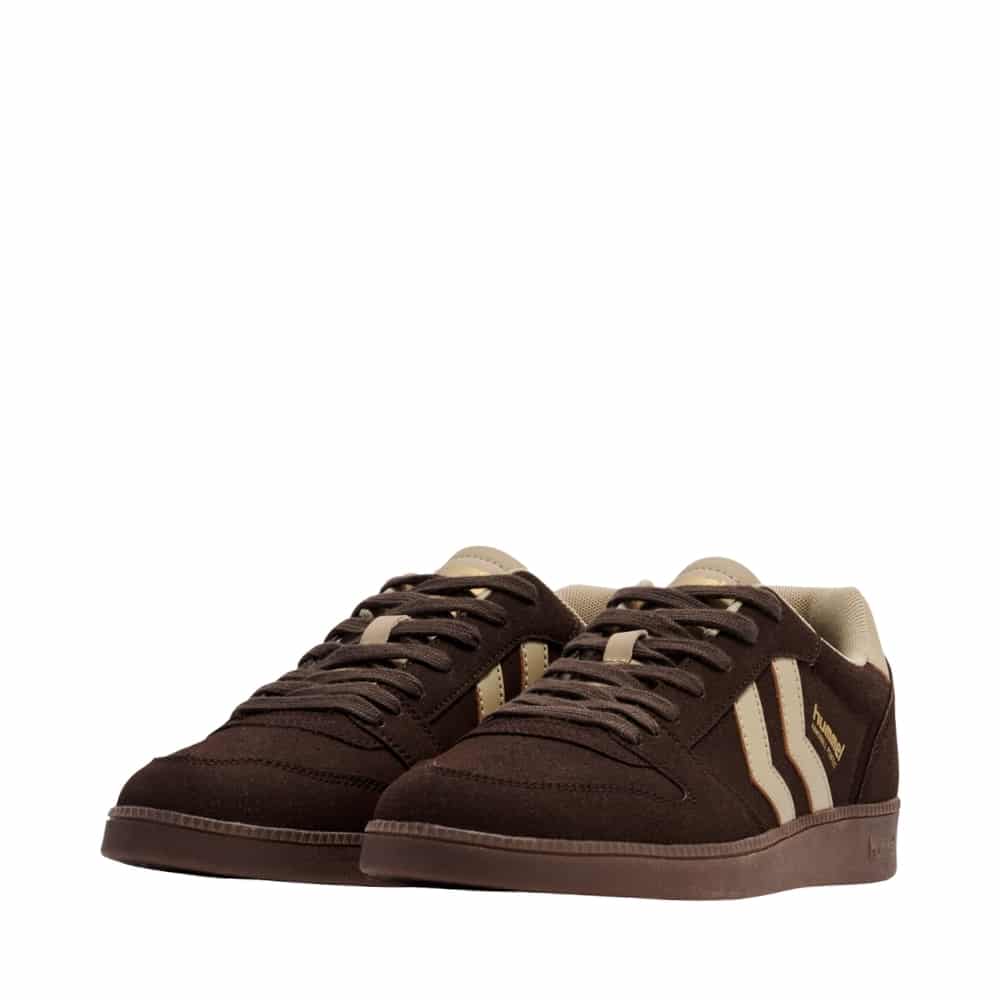 Hummel Handball Perfekt CL sneakers til dame og herre i mørkebrun. Disse mørkebrune sneakers kombinerer et moderne look med sporty Hummel vinkler i beige på siden. Snørebåndene foran gør det nemt at få skoen på og tilpasse den efter behov. Den udtagelige indersål er blød og komfortabel, perfekt til hele dagen. Med en fleksibel og let TPR ydersål får du både øget støtte og skridsikkerhed i hvert skridt.