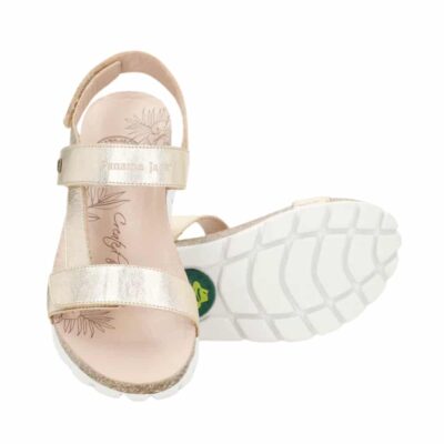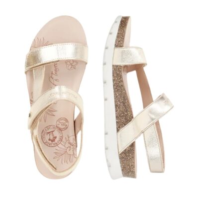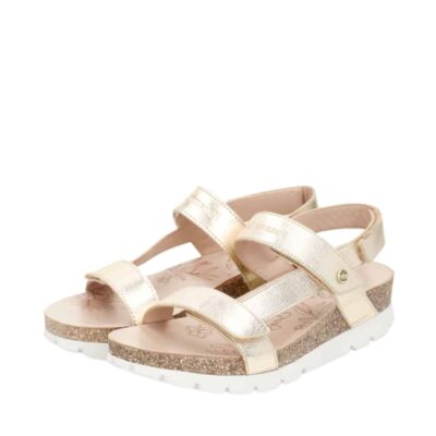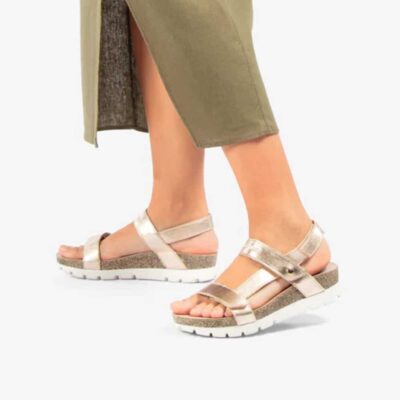 Panama Jack Selma Shine B1 sandal til dame i guld. Denne sandal er perfekt til dig, der ønsker både komfort og stil. Den er lavet af 100% læder og har en smuk guldfarve, der giver et sofistikeret look. Sandalen er let at tage på og af takket være de tre velcroremme, som kan justeres, så du opnår den perfekte pasform. Den bløde indersål sikrer, at du kan have sandalen på hele dagen med optimal komfort. Med en chunky ydersål, der giver både støtte og skridsikkerhed, er du godt rustet til hele dagen. Hælen på ca. 4,5 cm giver et elegant og behageligt løft.