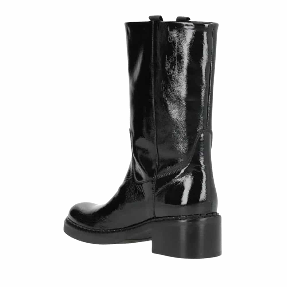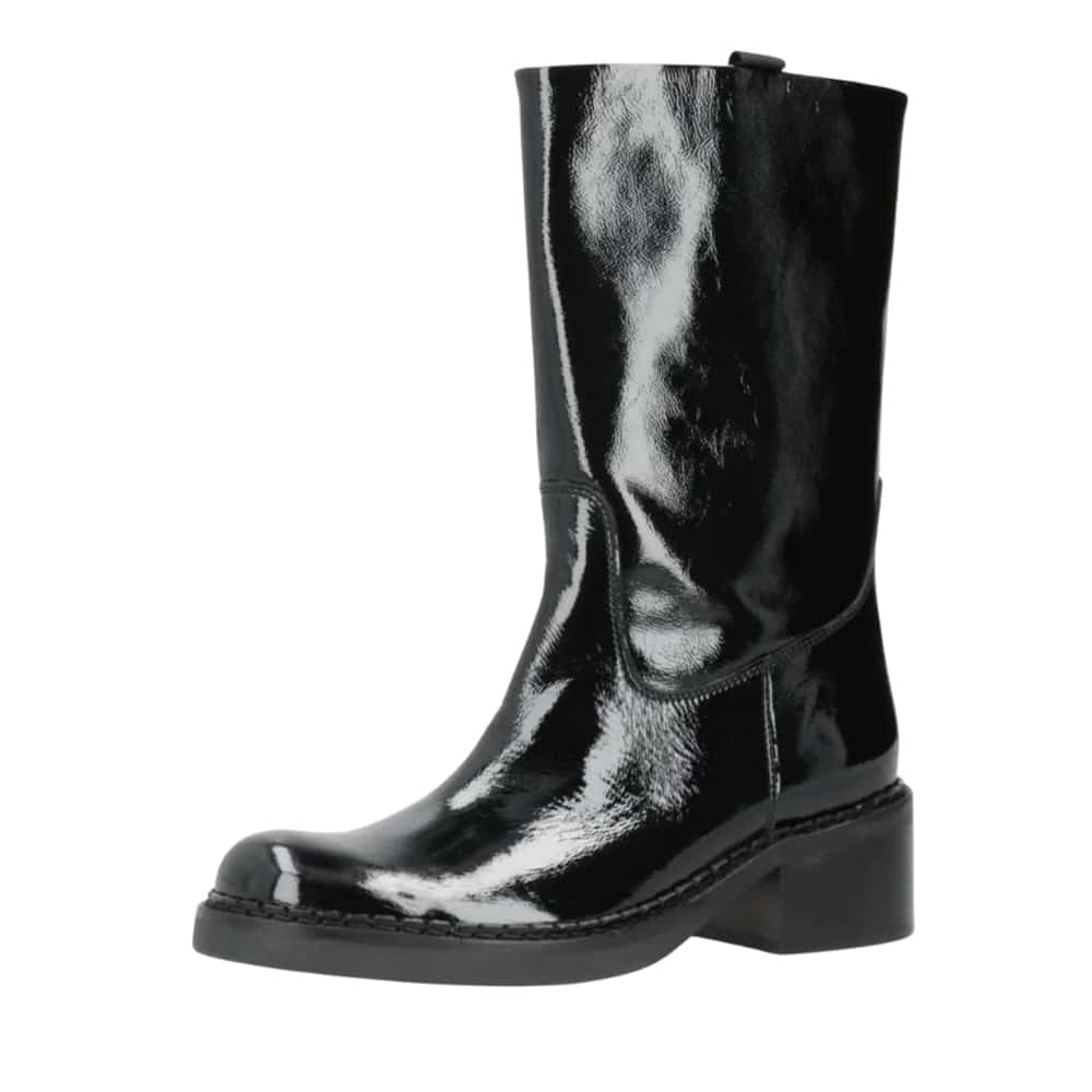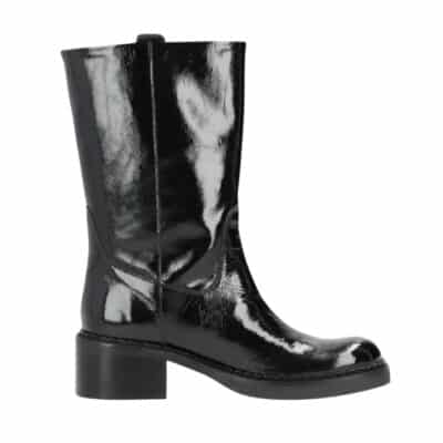 Phenumb Copenhagen Exposed P støvle til dame i sort lak. Denne støvle i en flot sort farve kombinerer stil og komfort. Lakoverdelen giver et moderne look, mens det bløde læder sikrer en behagelig følelse gennem dagen. Den bløde indersål giver komfort, og støvlen er nem at tage på, så du hurtigt kan pifte dit outfit op. Med en blokhæl på ca. 5 cm får du et elegant løft, der passer til både hverdagsbrug og mere festlige anledninger.