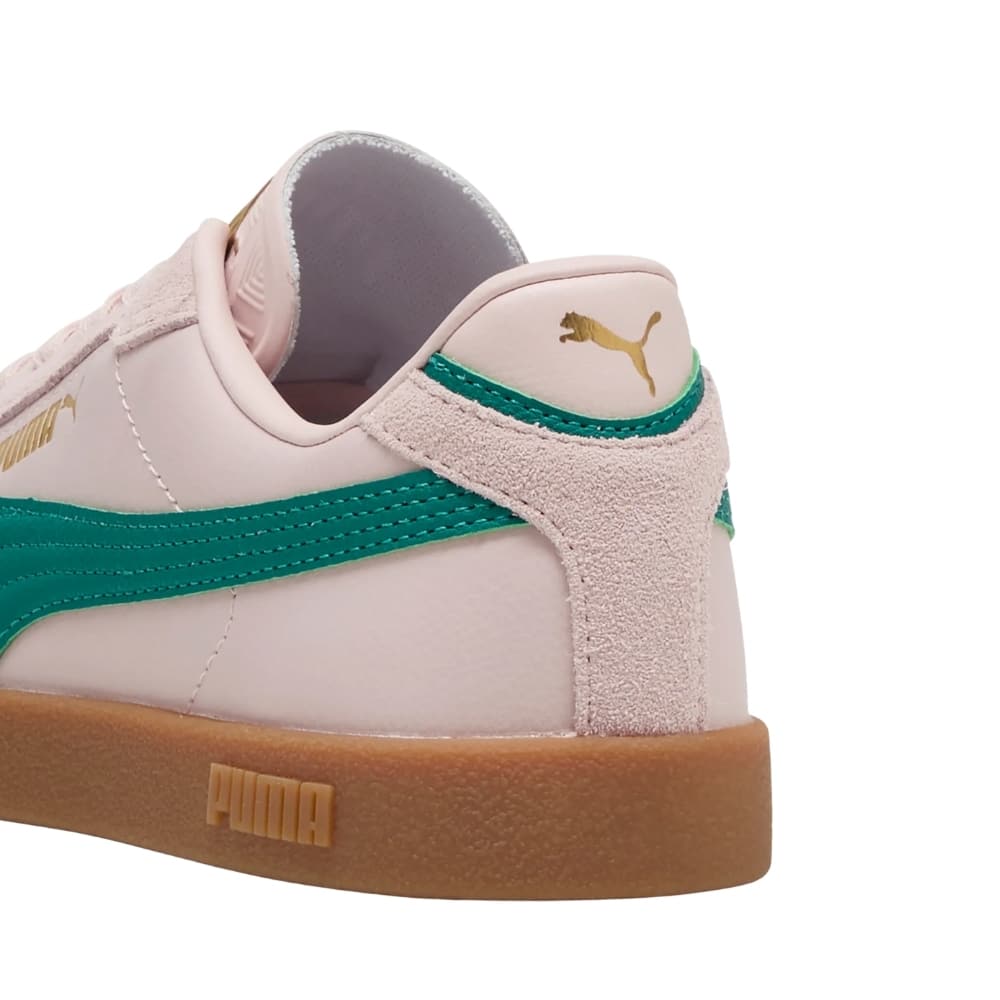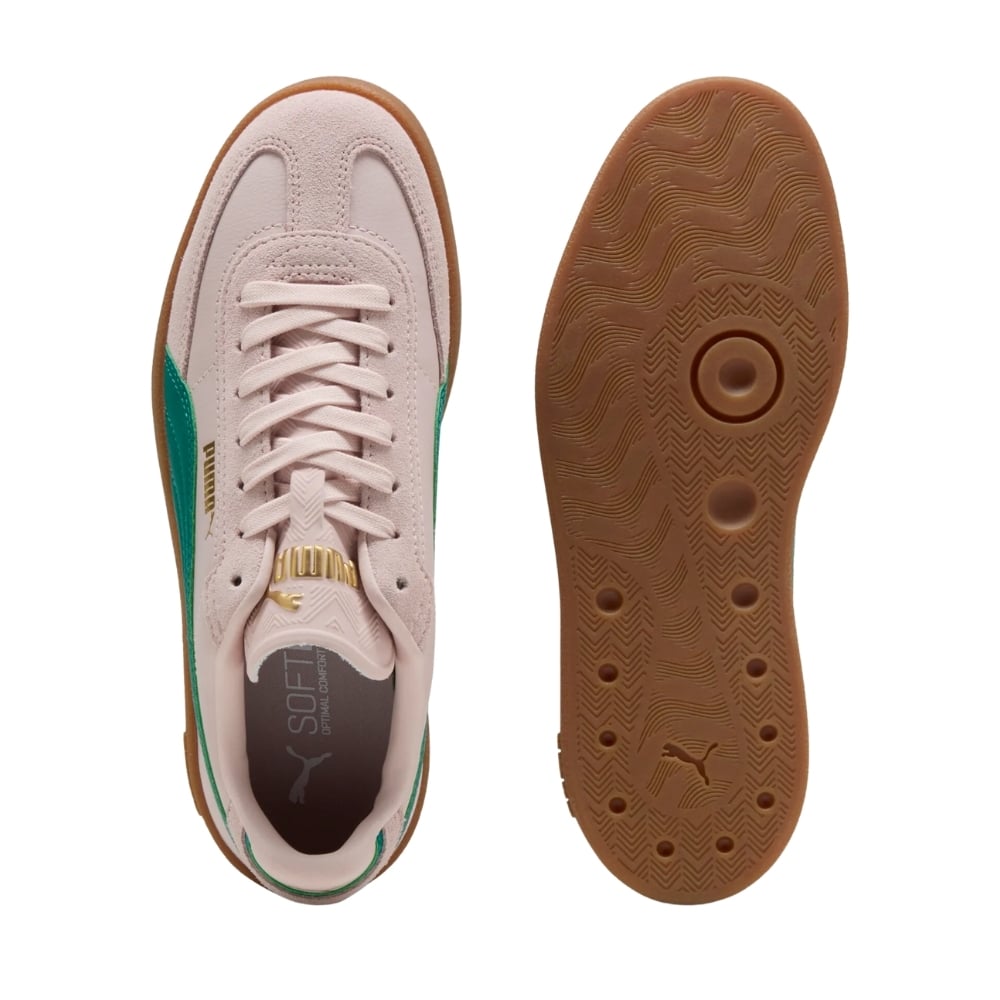 Puma Club II Era sneakers til dame i lyserød. En smart og alsidig sko med streetstyle inspiration og flotte ruskindsdetaljer kombineret med grønne farver. De velkendte Puma detaljer fuldender det stilrene design. Indvendigt sørger den udtagelige SoftFoam+ indersål for blødhed og støtte, så skoen er behagelig hele dagen. Den brune ydersål i gummi giver en solid fornemmelse under foden og bidrager til øget komfort og skridsikkerhed.