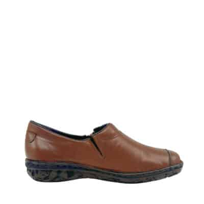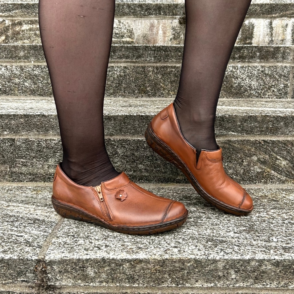 Relaxshoe sko til dame i brunt skind med to funktionelle lynlåse og udtagelig sål