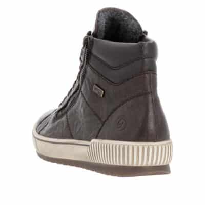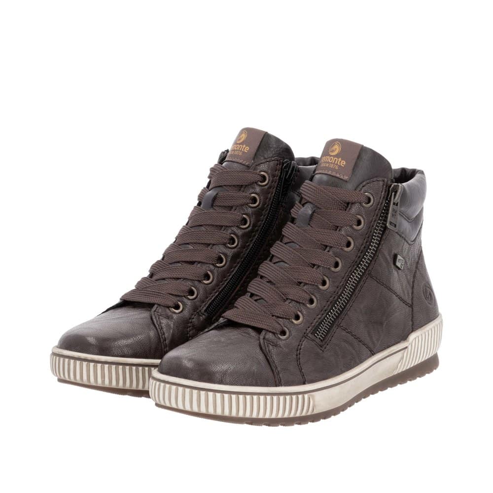 Remonte støvle til dame i brun. Stil og funktionalitet mødes i denne moderne mørkebrune skind støvle. Med lynlåse på begge sider kan du nemt tage støvlen af og på, og Remonte-Tex sørger for, at den holder sig kraftigt vandafvisende. Og indvendigt finder du en udtagelig Remonte-soft sål, ekstra bredde (G) og en let foring, som tilsammen giver høj komfort. Ydersålen med mønster øger både skridsikkerhed og stødabsorbering.