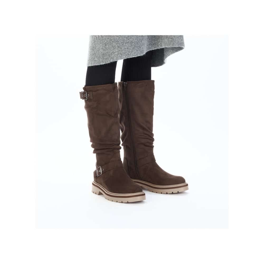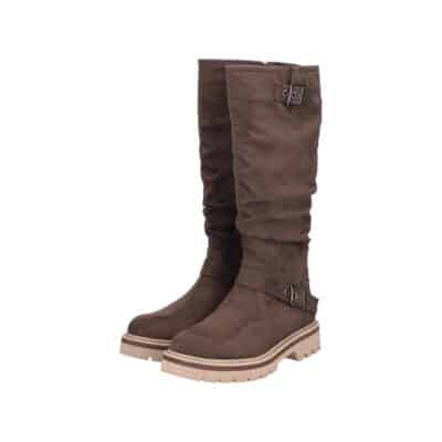 Rieker lang støvle til dame i brun. Elegant brun støvle med lange skaft og fine spænde detaljer, der giver et moderne og feminint udtryk. På indersiden har støvlen en funktionel lynlås, som gør den praktisk og let at bruge i hverdagen. Indvendigt er støvlen udstyret med en blød sål og en let foring, der giver komfort hele dagen. Den robuste chunky ydersål med mønster giver god støtte, stødabsorbering og skridsikkerhed.