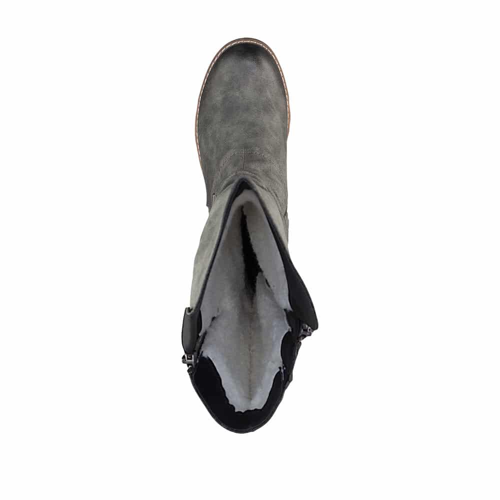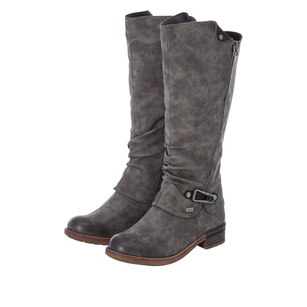Rieker lang vinterstøvle til dame i grå med Rieker-Tex og varm foring