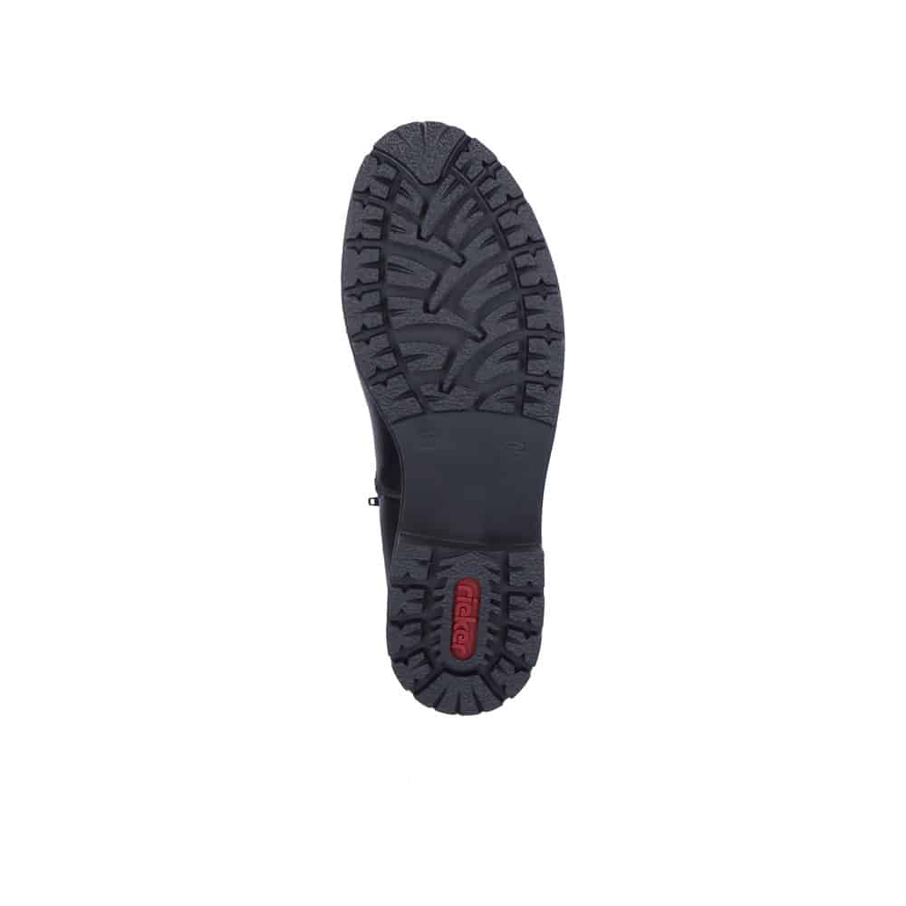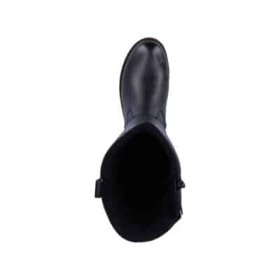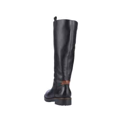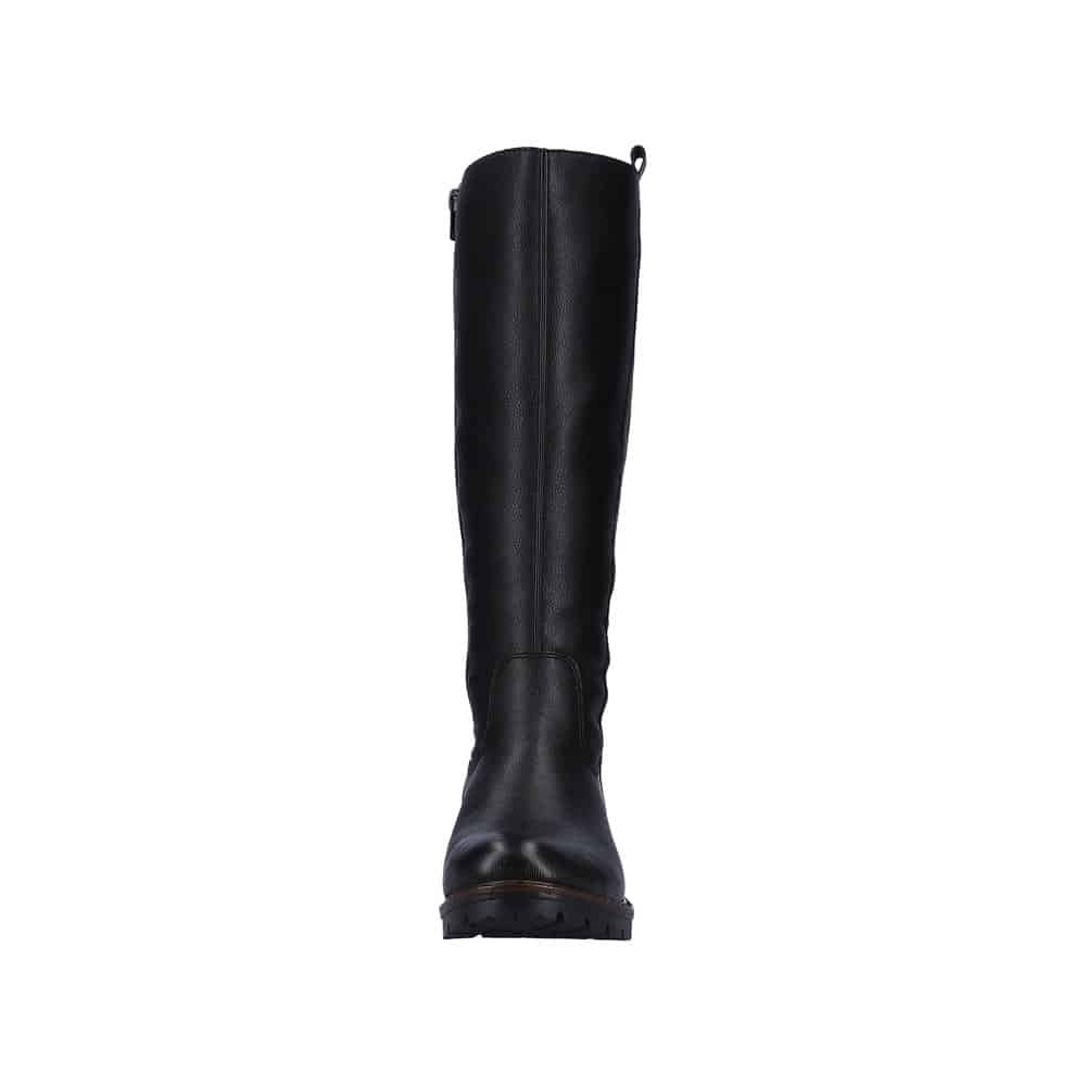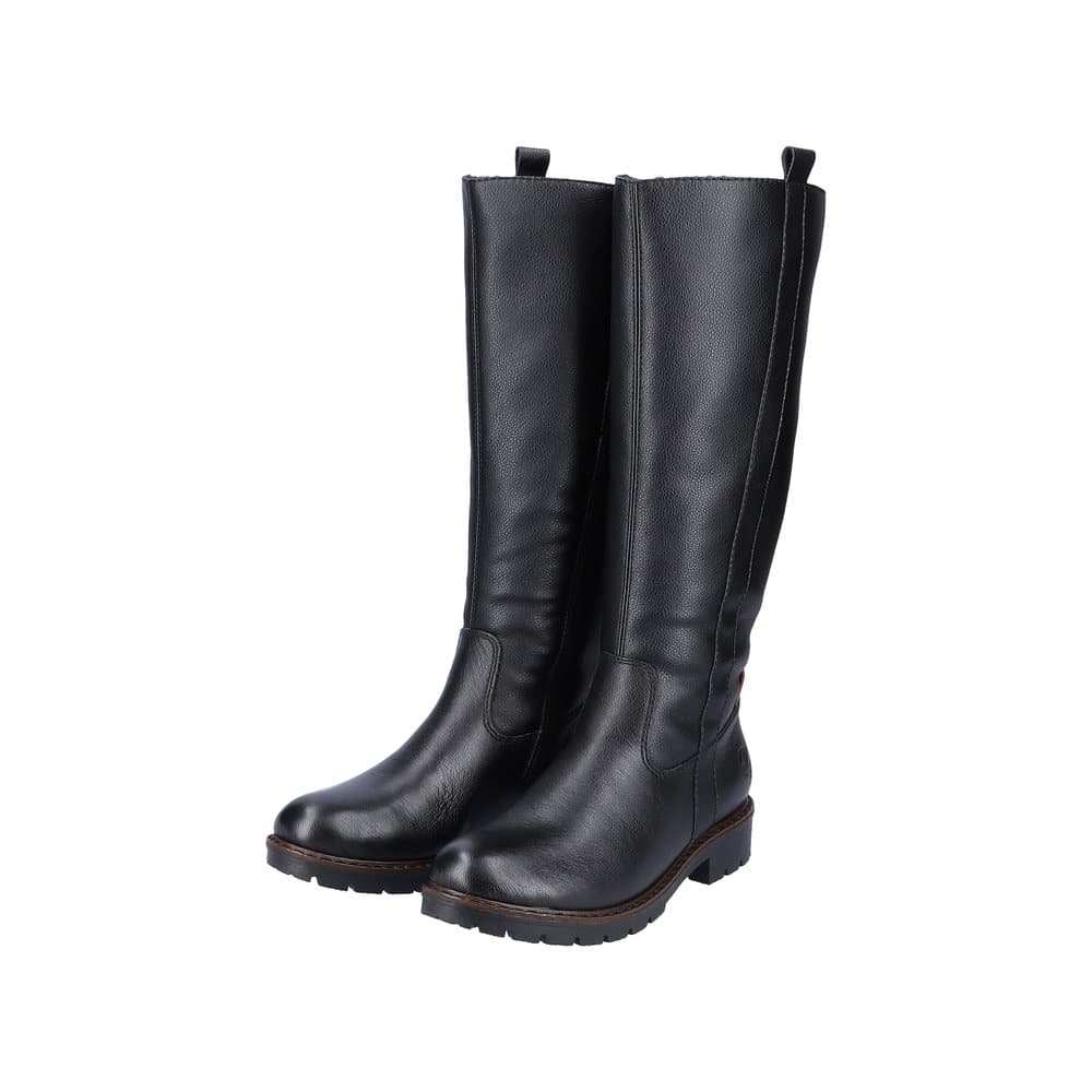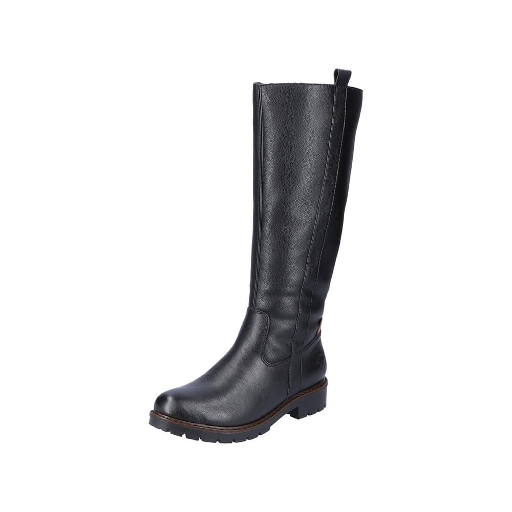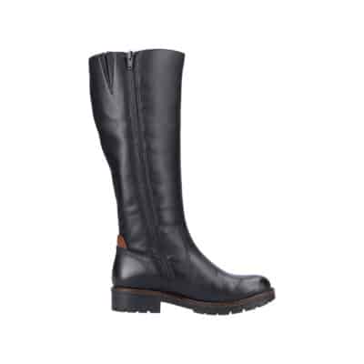 Rieker lang støvle til dame i sort. Elegant sort støvle med et klassisk og moderne look. Støvlen har en skindoverdel og en praktisk lynlås på indersiden, som gør den nem at komme i. En lille elastik øverst på skaftet sikrer en mere tilpasset pasform. Indvendigt finder du en blød og varm foring, der holder fødderne lune, mens den stødabsorberende ydersål med mønster giver forbedret skridsikkerhed og stabilitet.