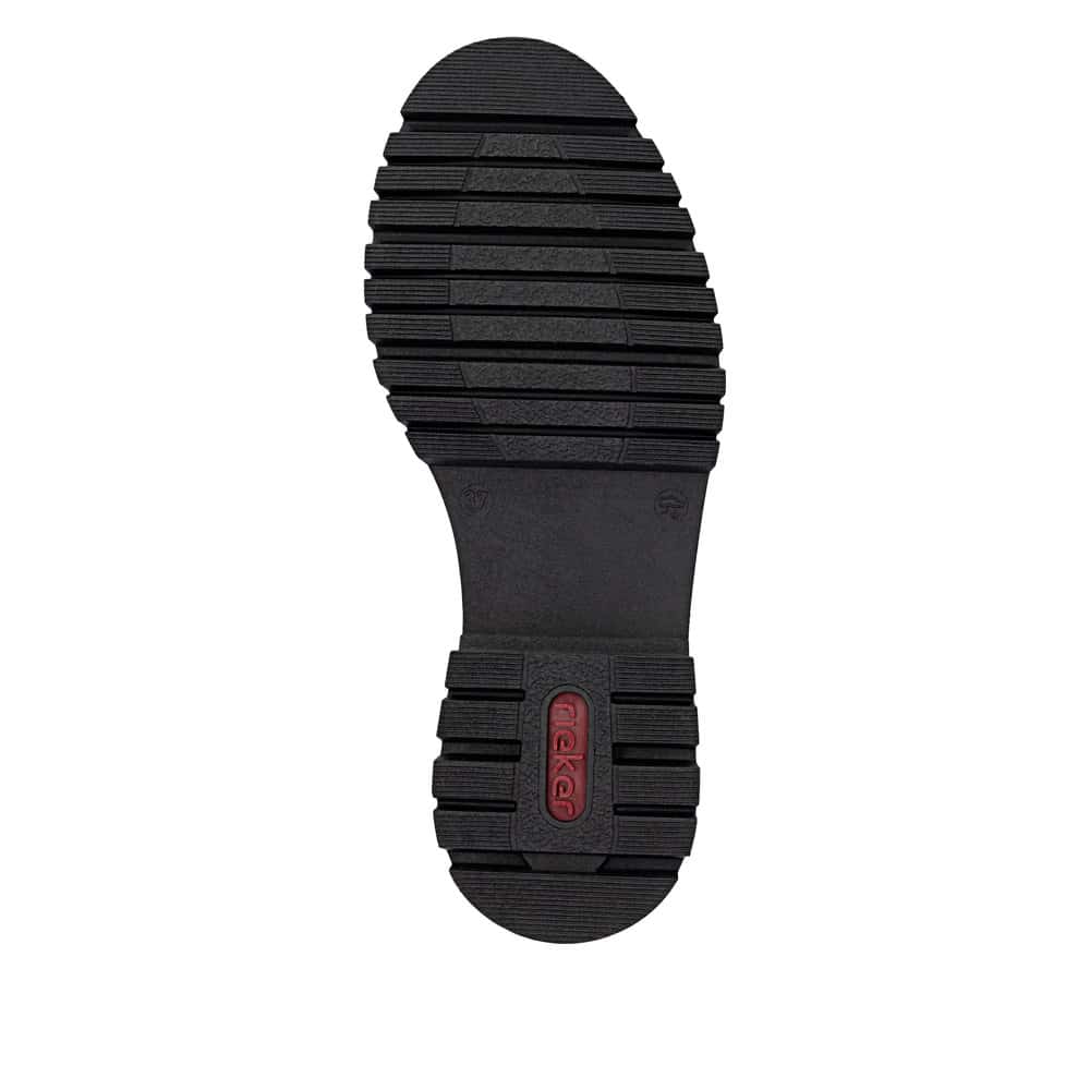 Rieker loafers til dame i rød lak. Med sin lakoverdel og simple detaljer får denne loafers et elegant og tidløst udtryk. De to elastikker gør den nem at tage af og på, og giver samtidig en god pasform. Indersålen er lavet i blødt skind og giver en behagelig følelse hele dagen. Den solide, stødabsorberende ydersål måler cirka 4 cm og giver både højde og støtte.
