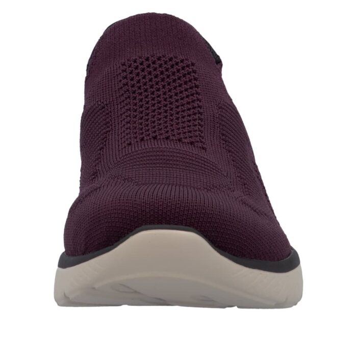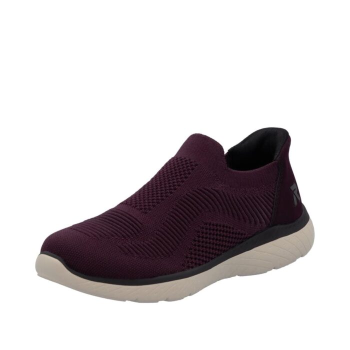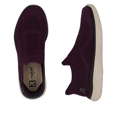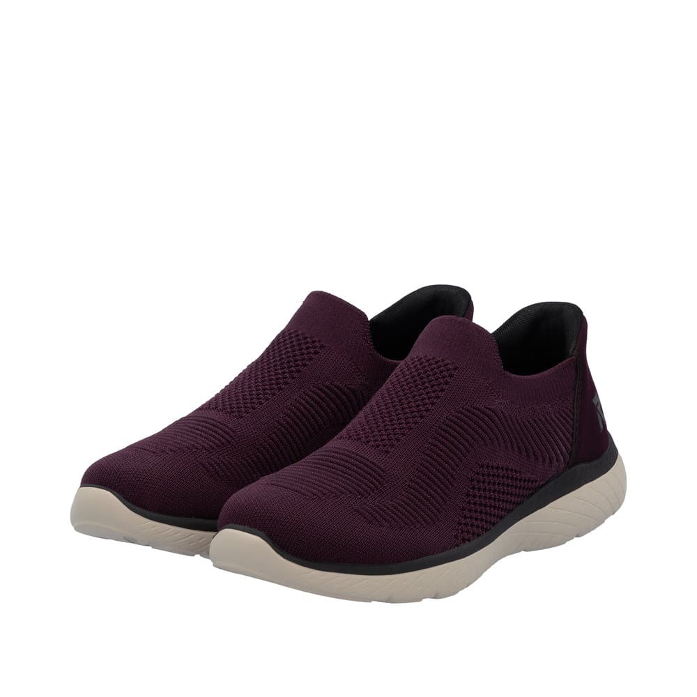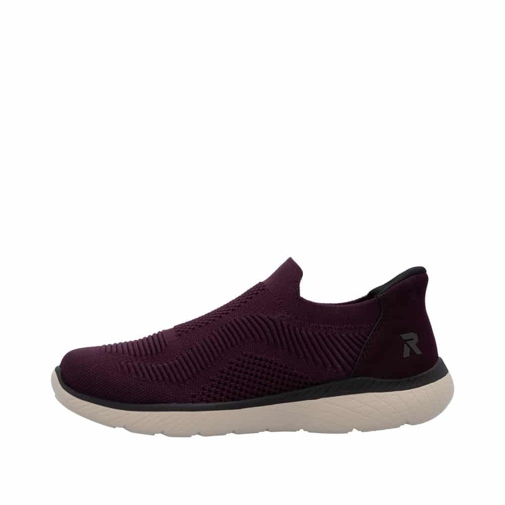 Rieker Ready 2 Go sko til dame i bordeaux. Disse sko er lavet med tanke på både funktion og komfort. Ready 2 Go teknologien og den faste hælkappe gør det nemt at tage skoen på uden at bruge hænder. Med Rieker Antistress får du en let og fleksibel sko, som er behagelig hele dagen. indvendigt møder man en memosoft-sål, der former sig efter din fod, hvor du har brug for det. Ydersålen har et mønster, der øger både stødabsorbering og skridsikkerhed, så du står stabilt i dine skridt.