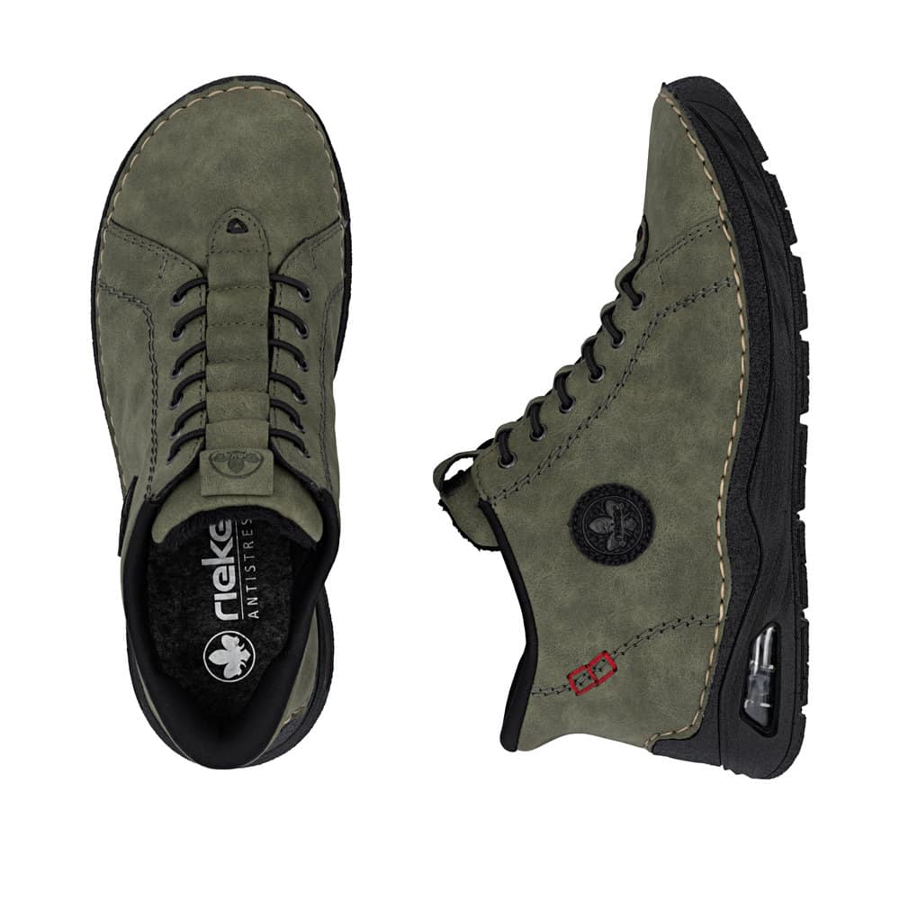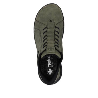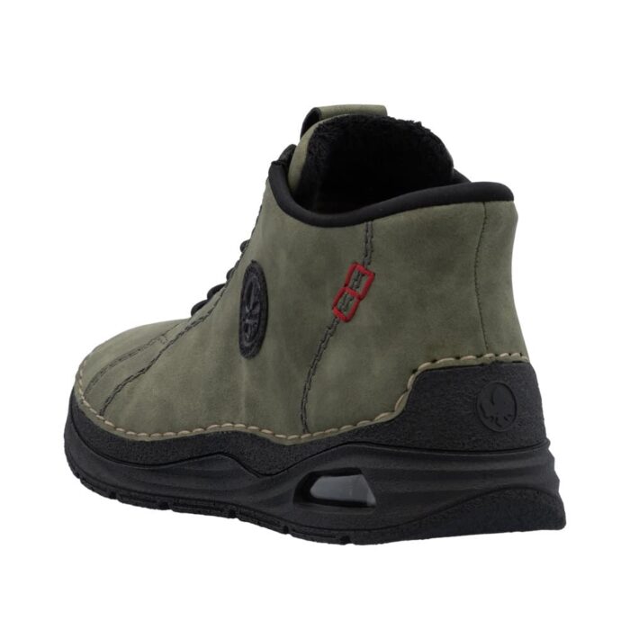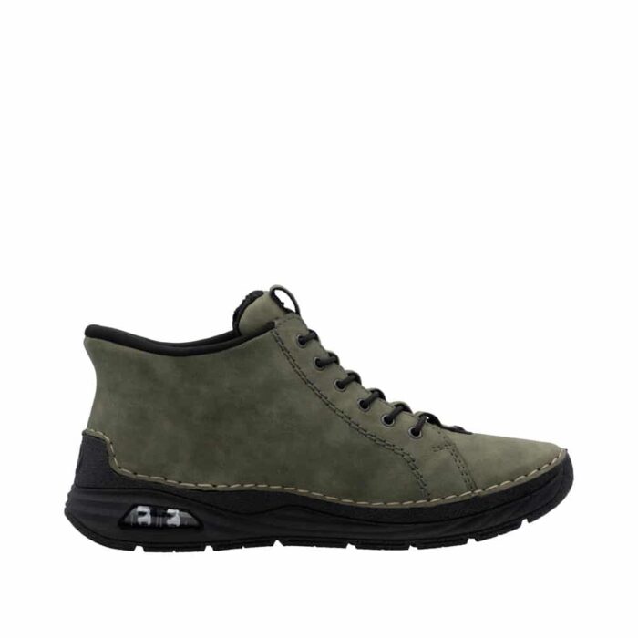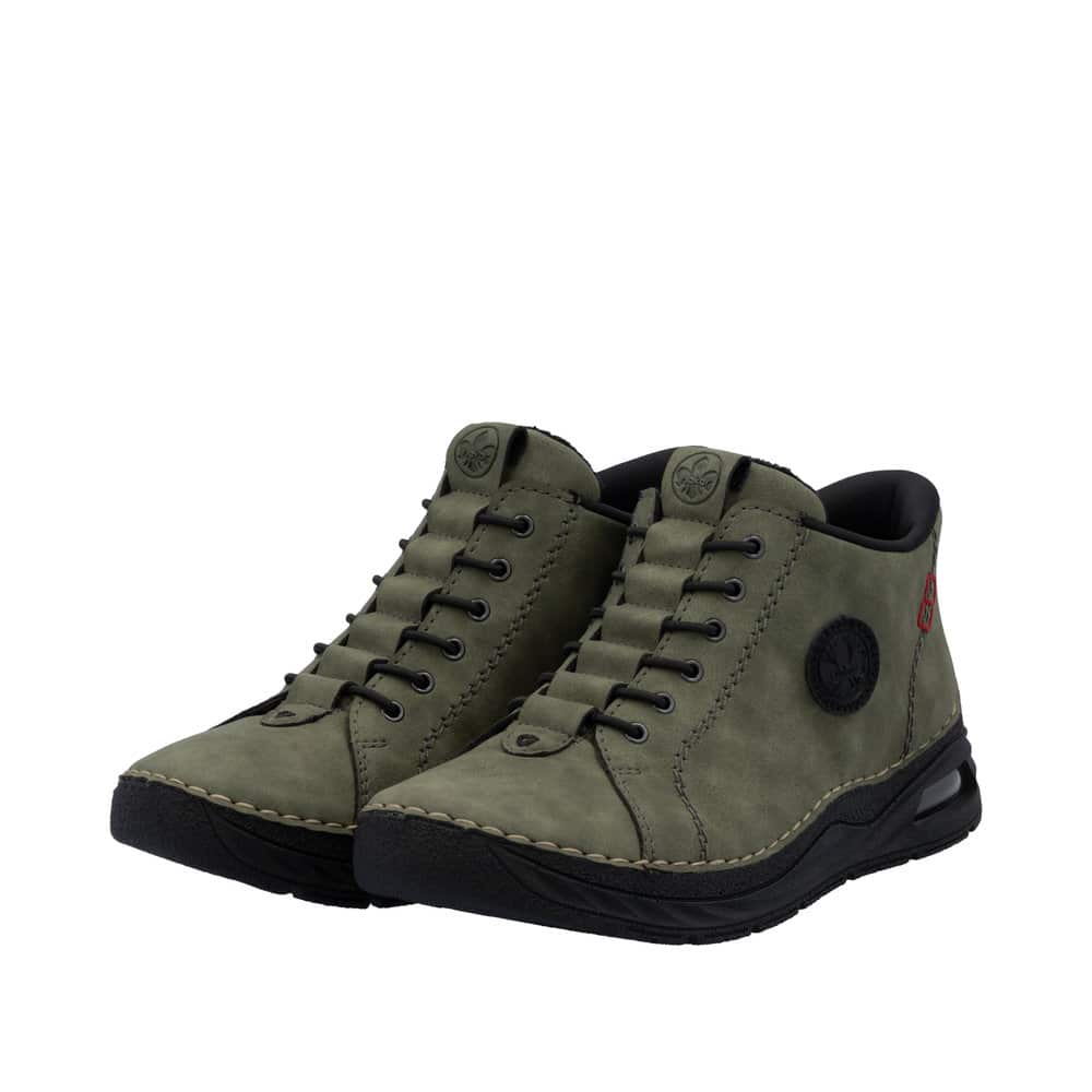 Rieker Ready 2 Go støvle til dame i army grøn, med en fast hælkappe og elastik foran samt let foring