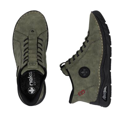 Rieker Ready 2 Go støvle til dame i army grøn. Denne støvle i army grøn er skabt til dig, der ønsker både funktionalitet og stil. Den smarte Ready 2 Go-teknologi og den faste hælkappe gør det nemt at tage støvlen på. Støvlen har en elastisk foran der giver en behagelig pasform. Indvendigt byder den på en let foring og en udtagelig sål, mens den lette ydersål med mønster giver ekstra komfort og skridsikkerhed i hverdagen.