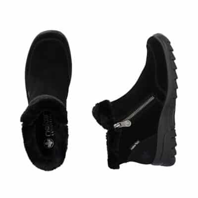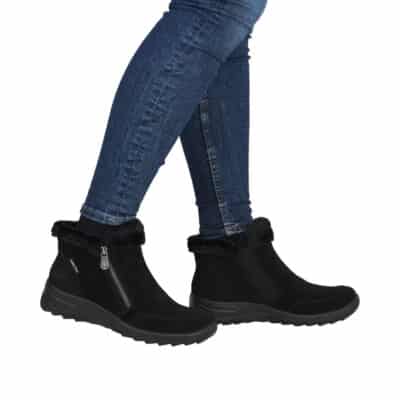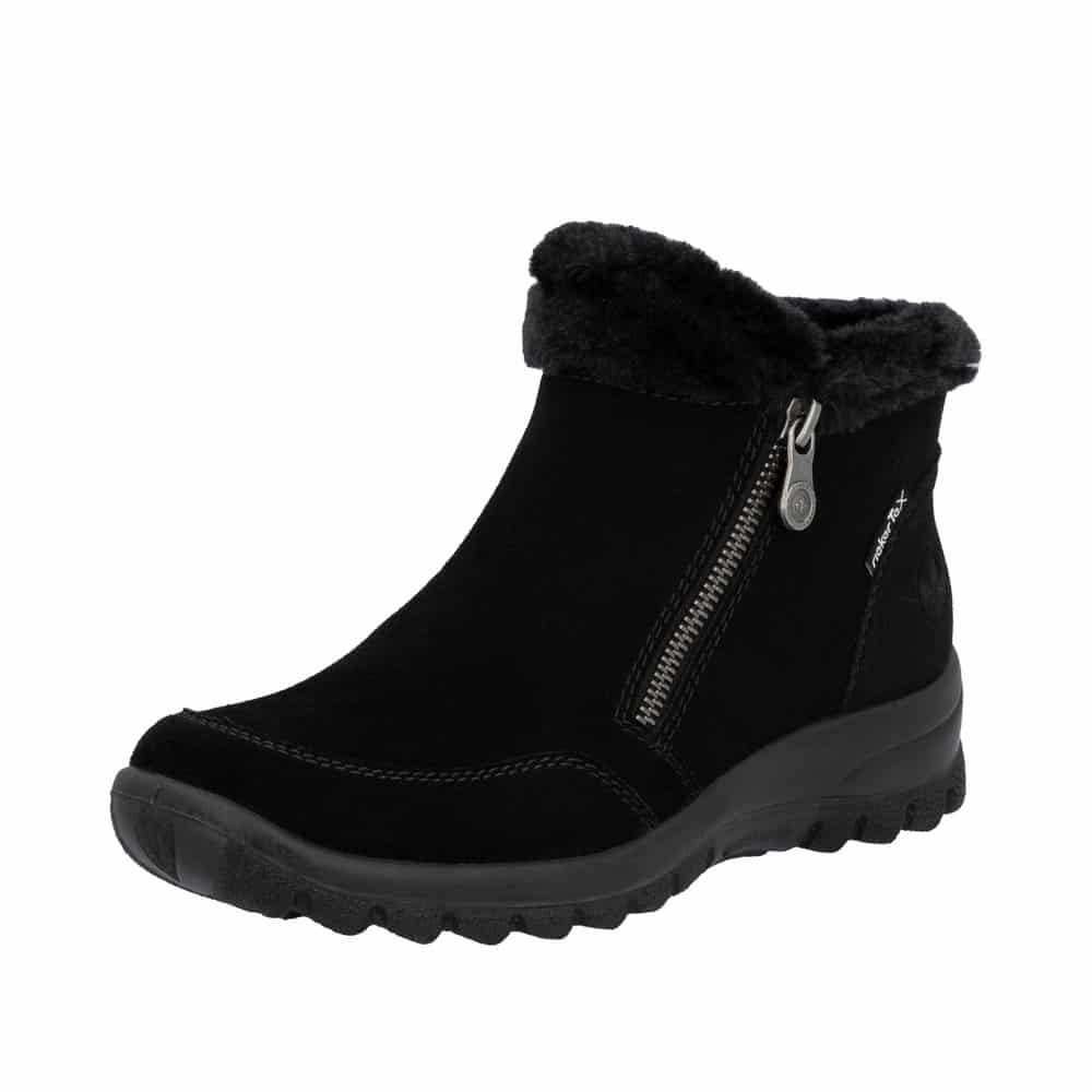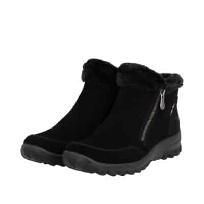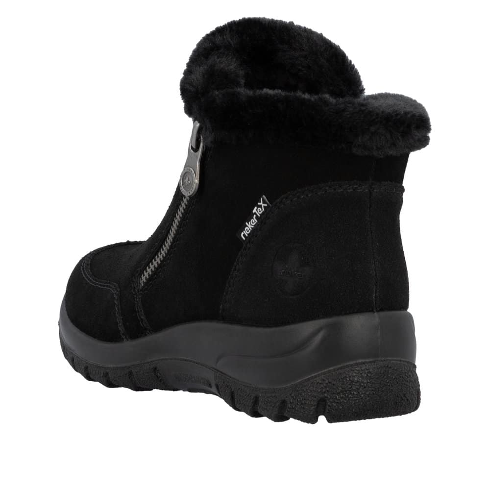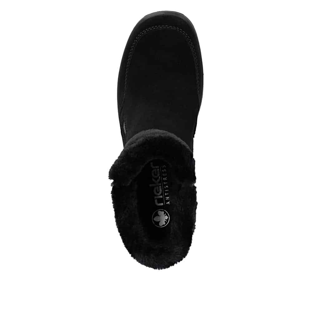 Rieker Ready 2 Go støvle til dame i sort ruskind med fast hælkappe og varm foring samt Rieker-Tex
