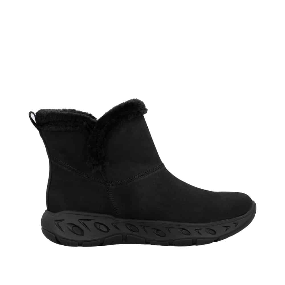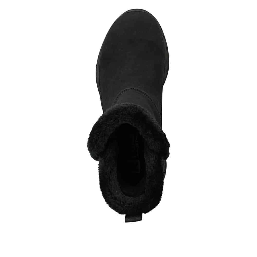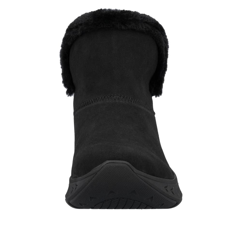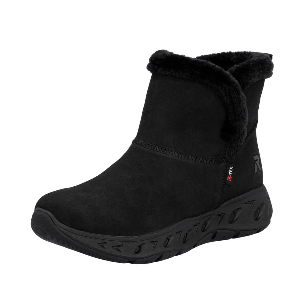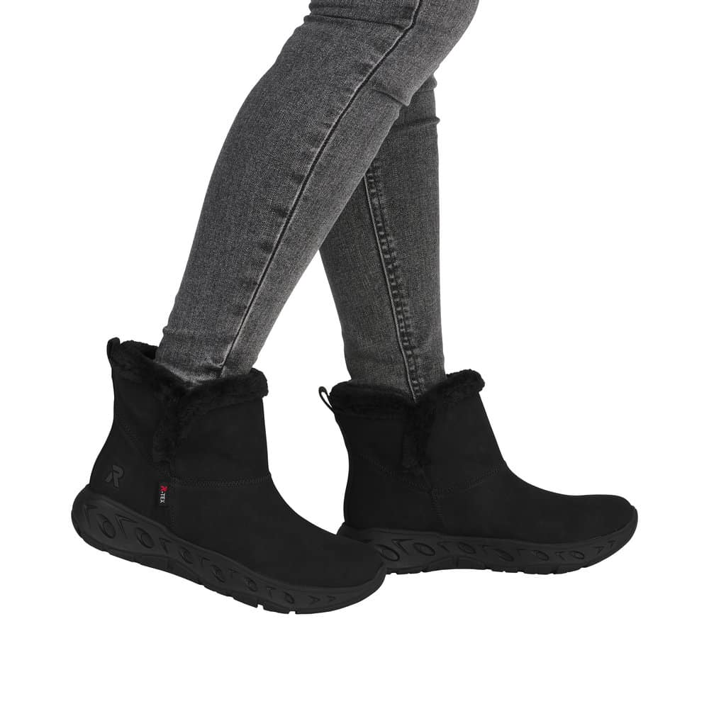 Rieker Ready 2 Go støvle til dame i sort. Elegant og praktisk på samme tid, denne sorte støvle er perfekt til hverdagen. Takket være Ready 2 Go og den faste hælkappe, kan du nemt komme i støvlen uden brug af hænder. Indvendigt mødes du af en varm foring og en Memosoft sål, der giver en behagelig komfort. Rieker-Tex teknologien gør støvlen kraftig vandafvisende, og den mønstrede giver øget stødabsorbering og skridsikkerhed.