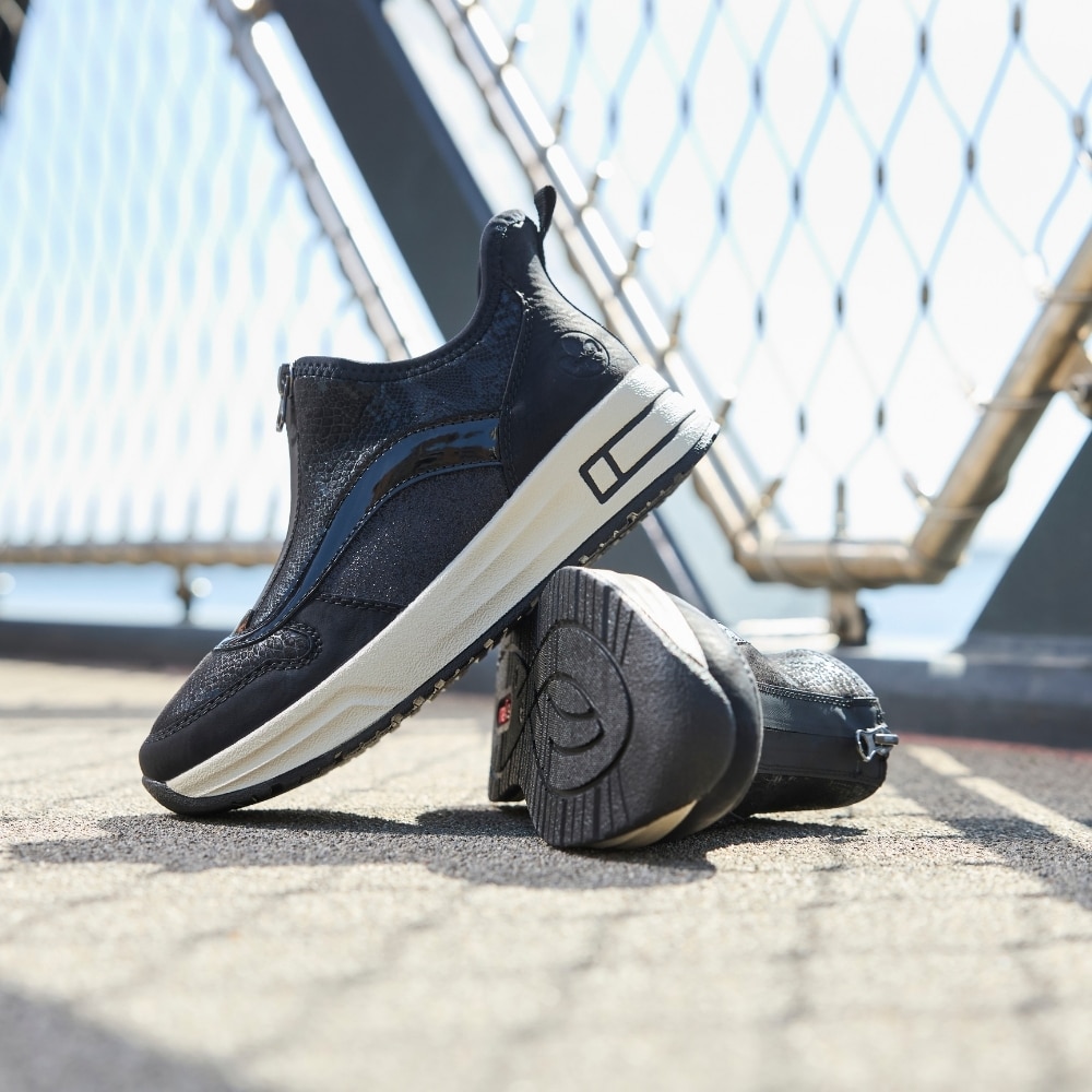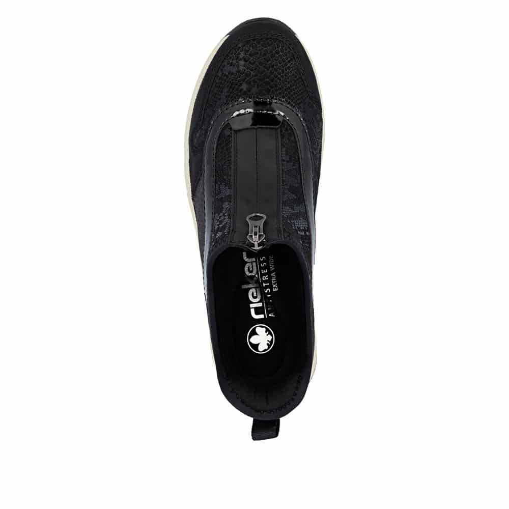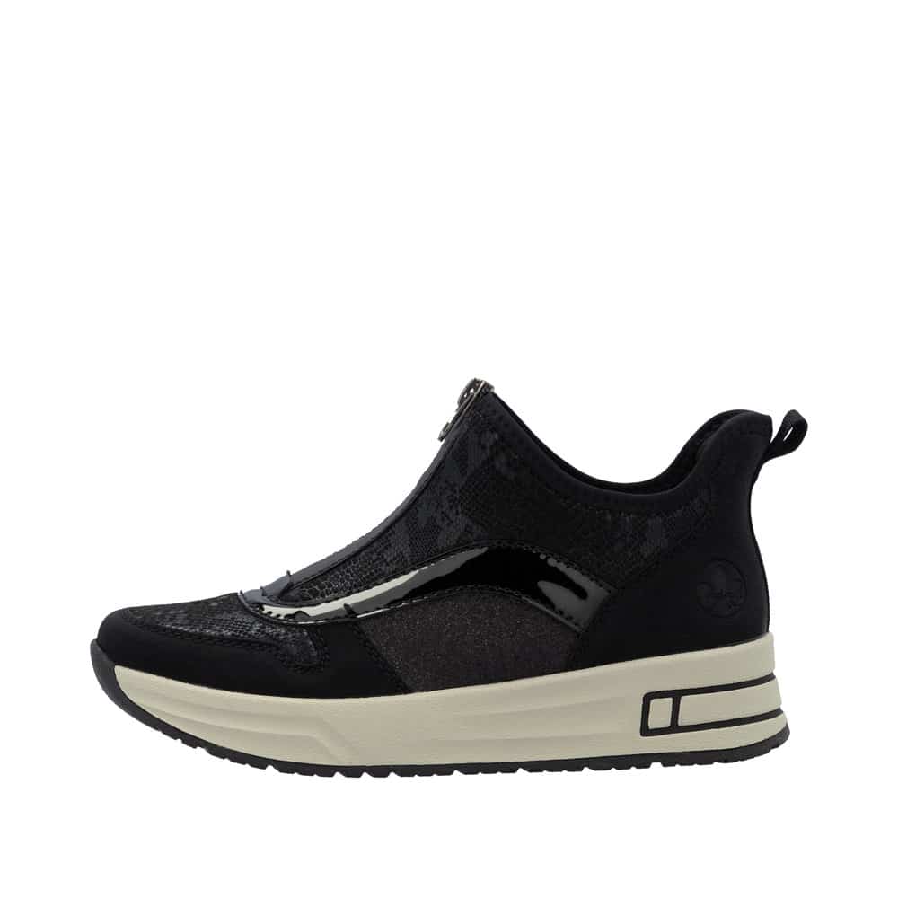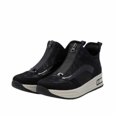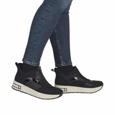 Rieker Ready 2 Go støvle til dame i sort, med fast hælkappe og lynlås samt udtagelig sål