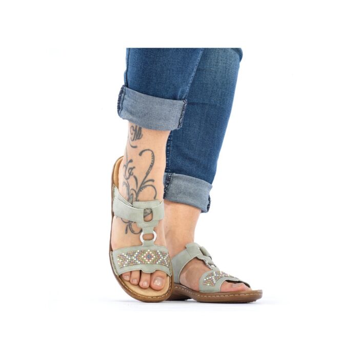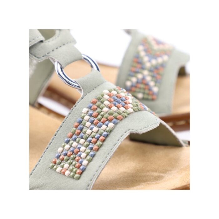 60820-52 Rieker Sandal i Grøn til Dame. Dejlig let og super flot sandal, i super god kvalitet. Modellen har mange fine detaljer, samt en velcro rem.