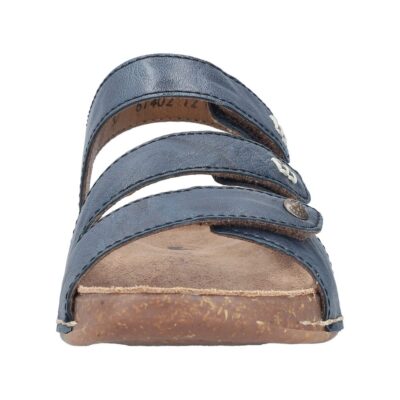 Rieker sandal til dame i blå. Flot og komfortabel sandal i en klassisk blå farve med en blød skindoverdel, der kombinerer stil og funktionalitet. Med tre velcroremme kan sandalen nemt justeres for en perfekt pasform, samtidig med at den er hurtig at tage af og på. Den bløde indersål i skind sikrer komfort hele dagen. Den lette og fleksible ydersål med mønster giver ekstra stabilitet og sikkerhed, så du kan bevæge dig ubesværet.