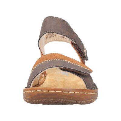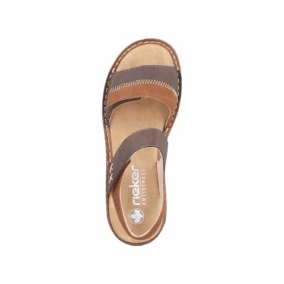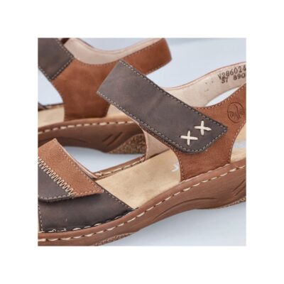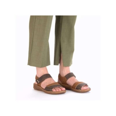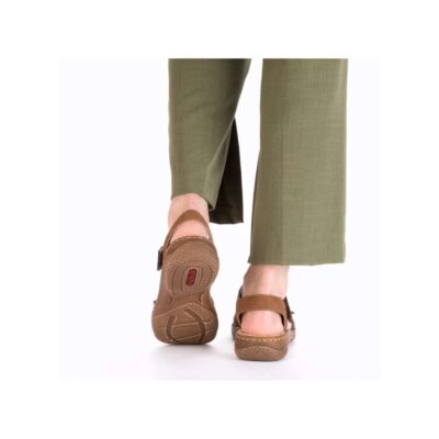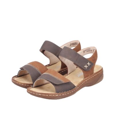 Rieker sandal til dame i brun. Gør dig klar til sommerens aktiviteter med disse brune Rieker sandaler, som kombinerer klassisk look med moderne komfort. De er lavet i en fleksibel og slidstærk konstruktion med flotte syninger og to velcrolukninger, der giver god justerbarhed. Den bløde fodseng og lette sål med kilehæl gør sandalen velegnet til både hverdag og fritid. Perfekt til dig, der ønsker komfort uden at gå på kompromis med udseendet.