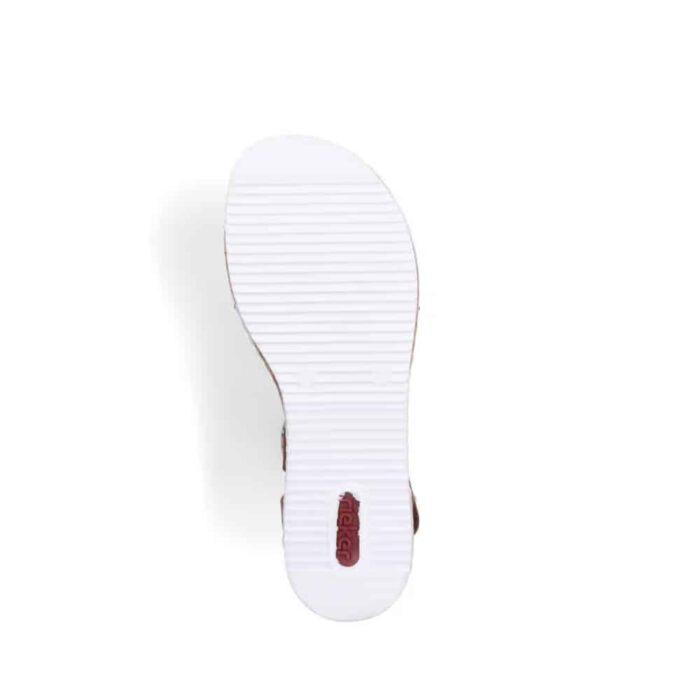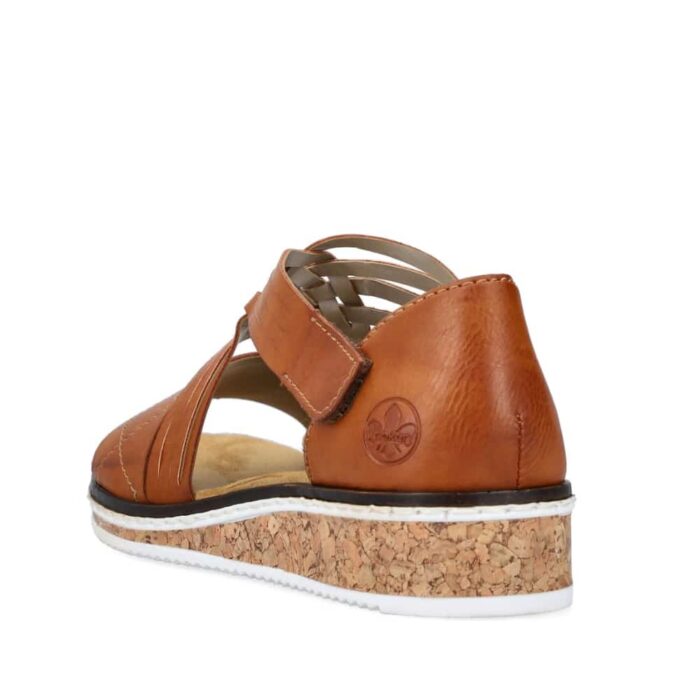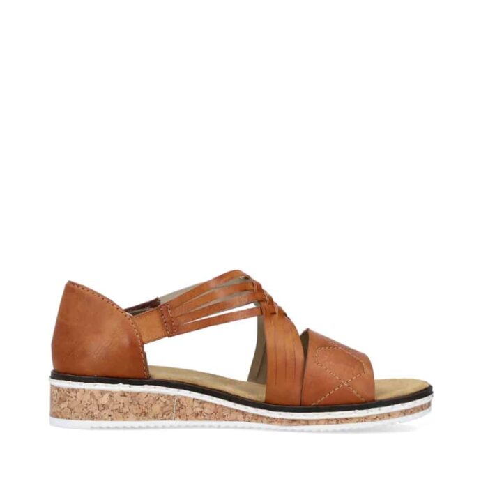 Rieker sandal i brun til dame. Giv dine fødder den ultimative forkælelse med disse brune kilesandaler fra Rieker. Med den praktiske velcrolukning er de nemme at tage på, og den elastiske detalje sikrer en perfekt og behagelig pasform. Nyd den lette og stødabsorberende sål med kilehæl, der sørger for, at dine fødder føles velplejede og komfortable hele dagen. Disse sandaler kombinerer ikke kun stil, men også en usammenlignelig komfort.