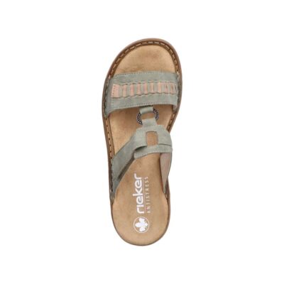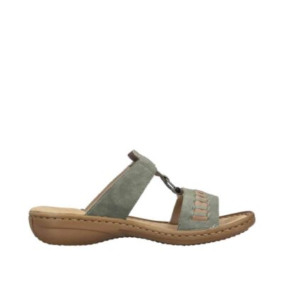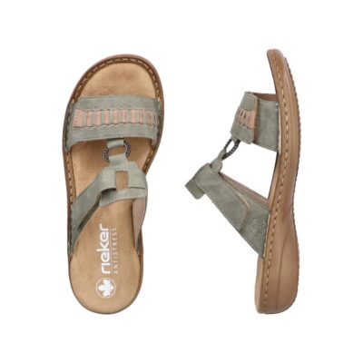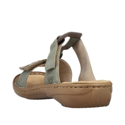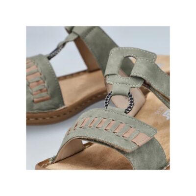 Rieker sandal til dame i grøn. Gør dig klar til sommerens eventyr med disse stilfulde grønne Rieker-sandaler. De to praktiske velcrolukninger gør det nemt at tilpasse pasformen, og den lette sål sikrer, at hvert skridt føles behageligt. Den skånsomme PU-sål absorberer stød og minimerer belastningen på dine fødder. Sandalens pasform sikrer en tæt og komfortabel oplevelse, mens det syntetiske materiale giver et elegant udtryk. En ideel kombination af stil og funktionalitet.