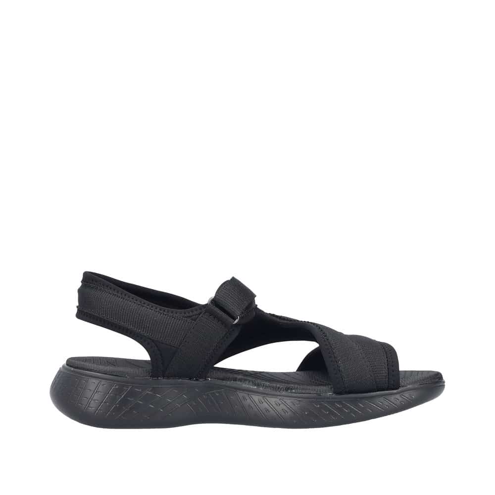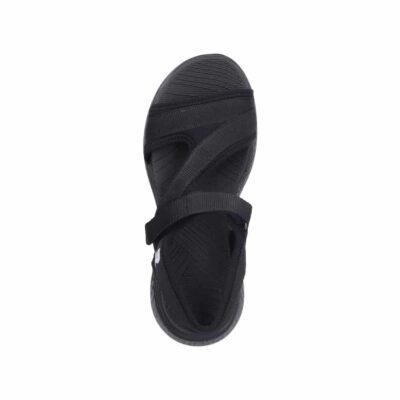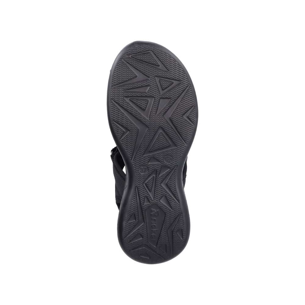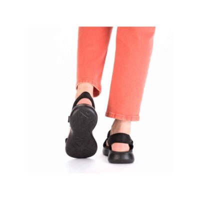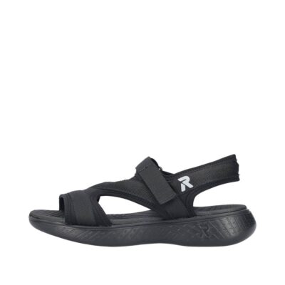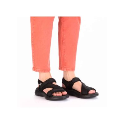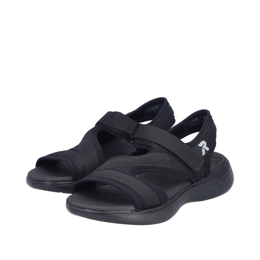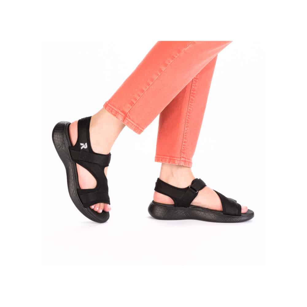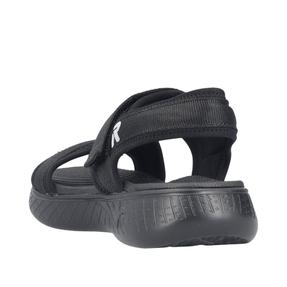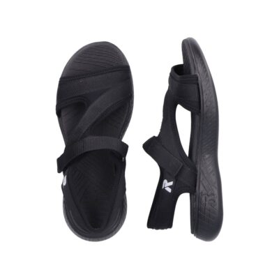 Rieker sandal til dame i sort med let og fleksibel samt stødabsorberede såler og velcrorem