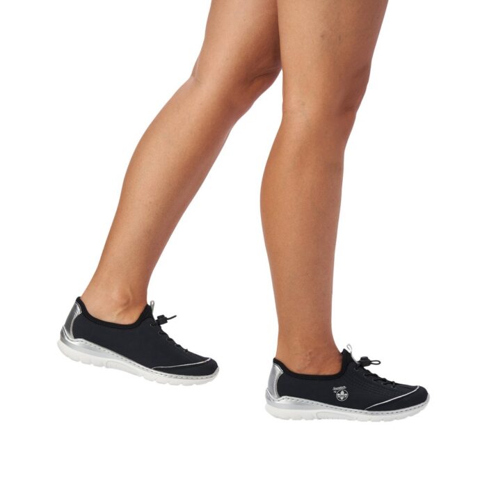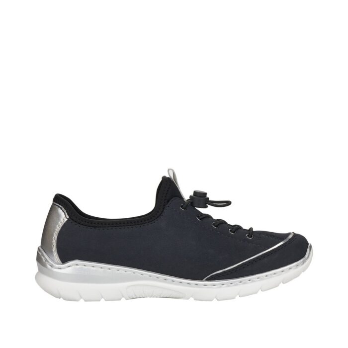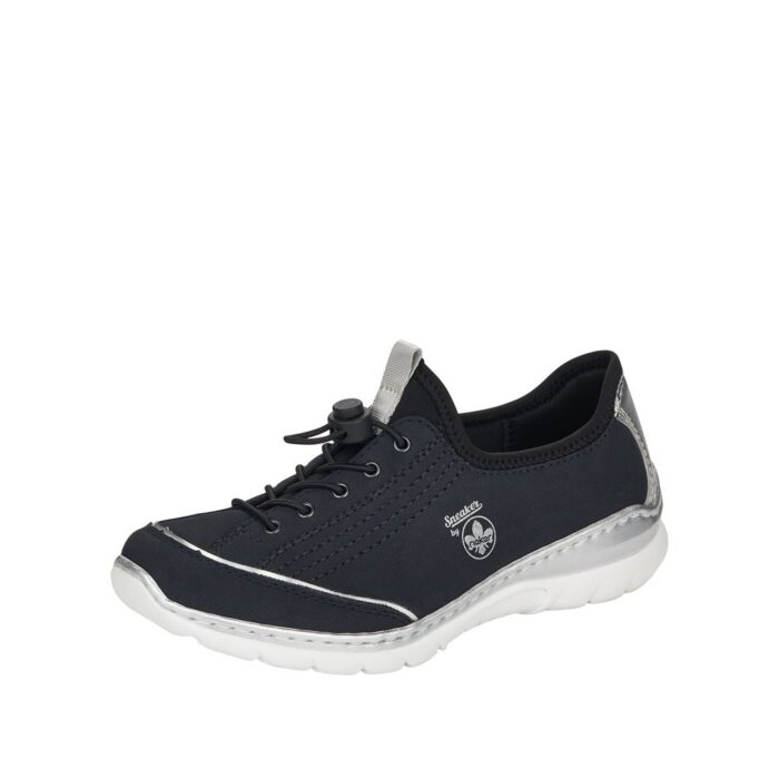 L32T0-14 Rieker Sneakers i Blå til Dame. Dejlig let og blød sneakers i en flot blå farve. Modellen har en lækker blød memo-soft sål, som former sig efter dine fødder.