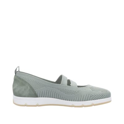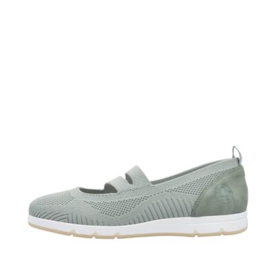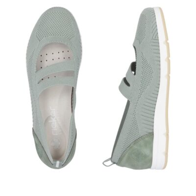 Rieker sko til dame i grøn. Opdag den perfekte balance mellem stil og komfort med disse grønne Rieker damesko. Designet med elastik over vristen og Memocup-indlæg, der kan tages ud, tilbyder de både støtte og åndbarhed. Den fleksible TR-gummisål og det lette design gør denne sko både praktisk og behagelig, perfekt til varme dage.