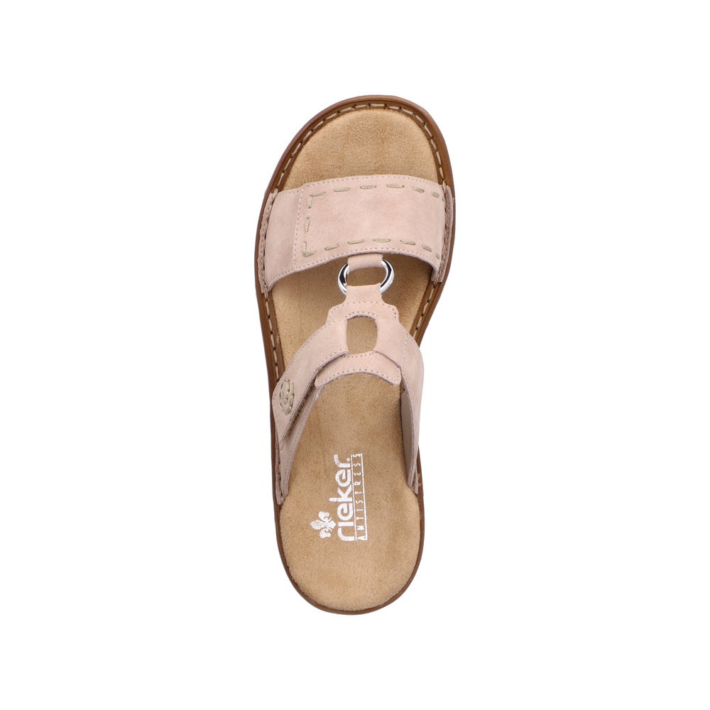 60822-31 Rieker Slenters i Rosa til Dame. Dejlig let og blød slanters i en flot Rosa farve, med flotte detaljer i overdelen. Modellen har en justerbar velcro rem, som gør det let at tilpasse netop denne model til din fod. Modellen har en hælhøjde på 3 cm.