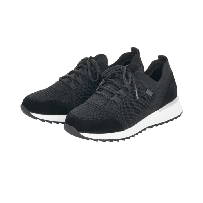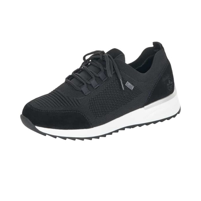 N8010-00 Rieker Sneakers I Sort Til Dame. Modellen har en flot sort farve og er i en dejlig, blød og let kvalitet. Lige til at hoppe i. Modellen har “Rieker-Tex” som gør den kraftig vandafvisende.