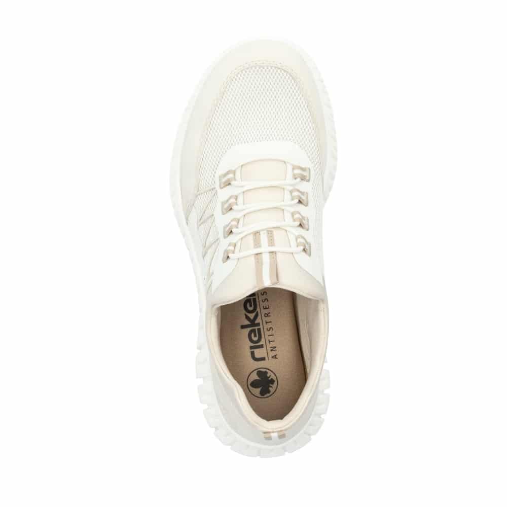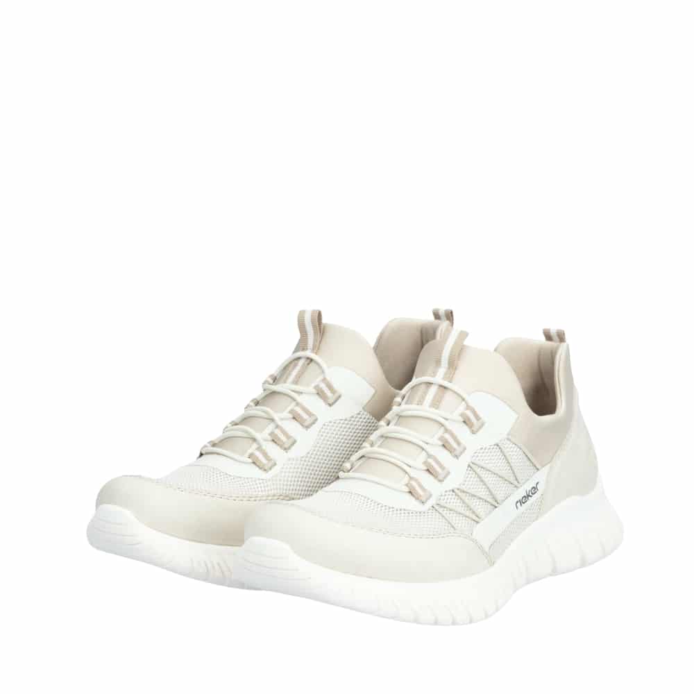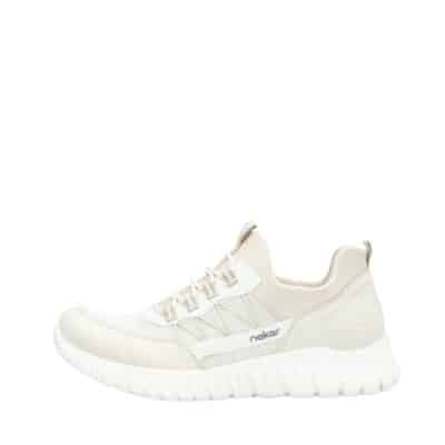 Rieker sneakers til dame i beige med elastik og Memosoft sål