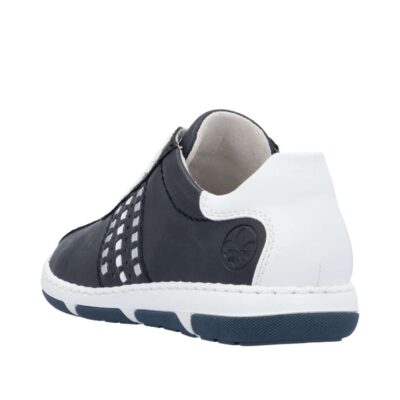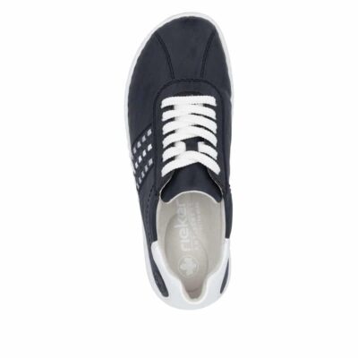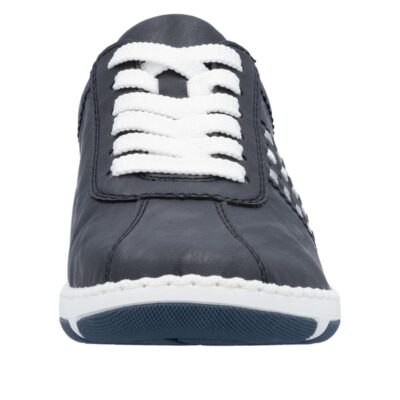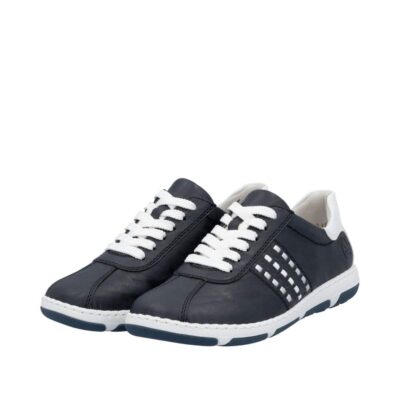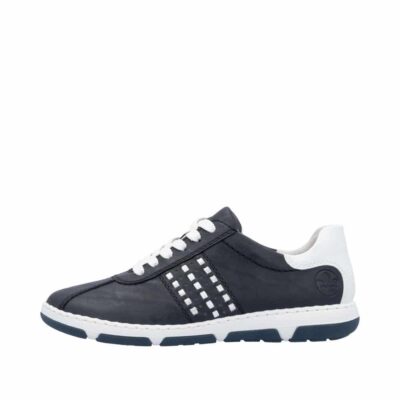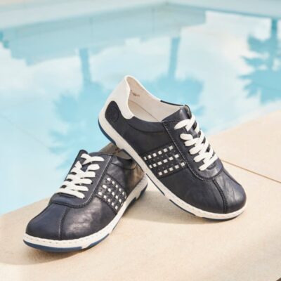 Rieker sneakers til dame i blå. Skru op for komforten og stilen. Disse blå Rieker snøresko til damer er fremstillet med et praktisk og stilfuldt design. Med elastiske indsatser, der gør det nemt at tage skoene på og af, og en komfortabel pasform, er de perfekte til travle dage. Den udtagelige indersål og den fleksible TR-sål gør dem ekstra behagelige at gå i, og den ekstra vidde H sikrer, at dine fødder får den plads, de behøver. Et must-have for dem, der ønsker både komfort og elegance i én sko.