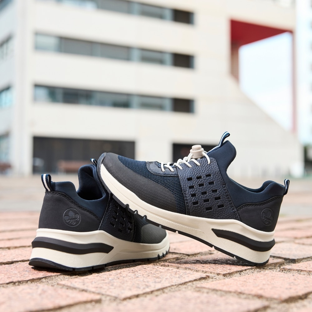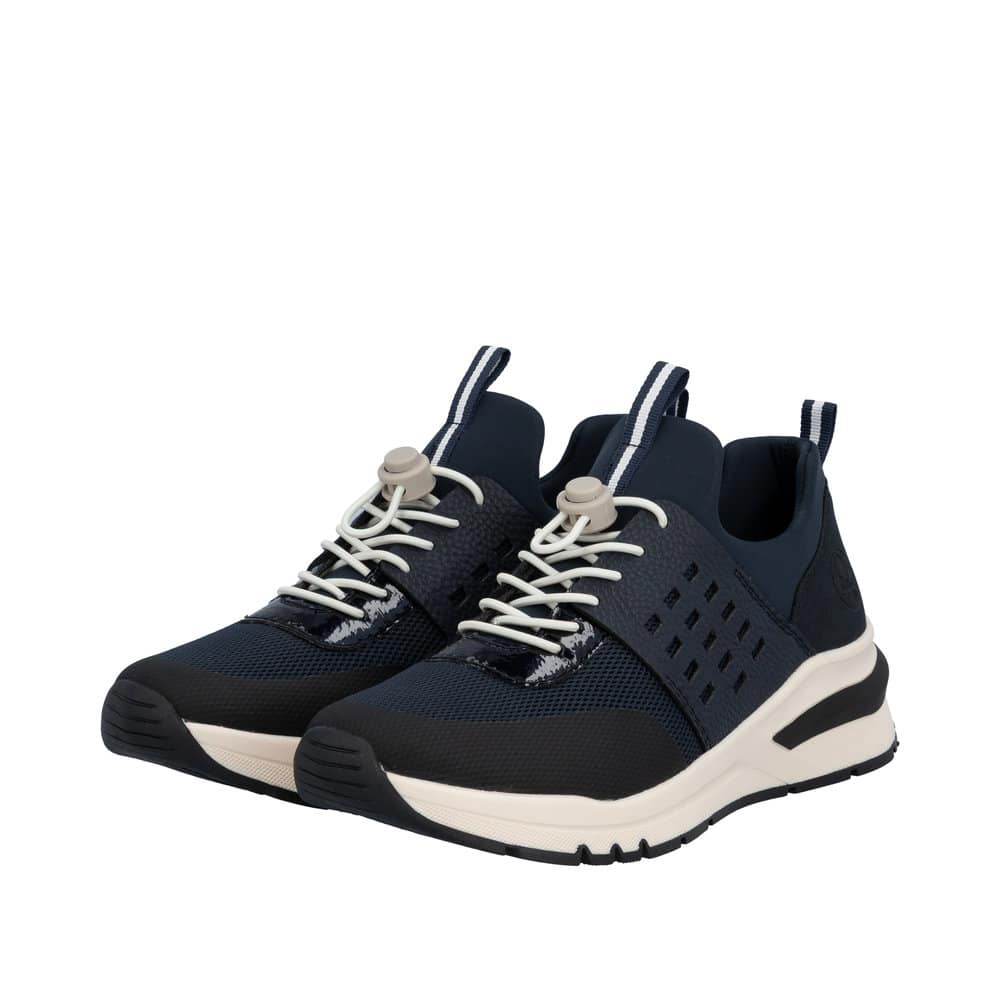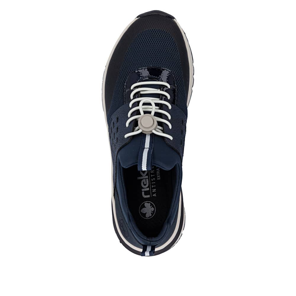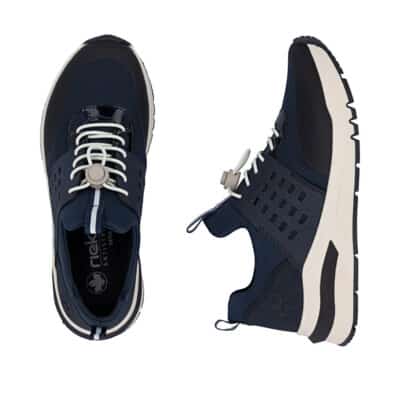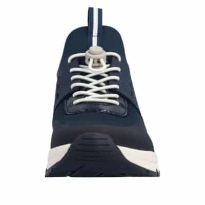 Rieker sneakers til dame i blå. Flot sko i blå med et moderne udtryk og en komfortabel pasform. Skoen er udstyret med elastisk lukning, så skoen nemt kan tilpasses til foden. Indvendigt har skoen en blød og udtagelig indersål samt ekstra bredde H, der giver rummelighed og god komfort. Ydersålen er designet med mønster, som giver øget stødabsorbering og skridsikkerhed gennem dagen.