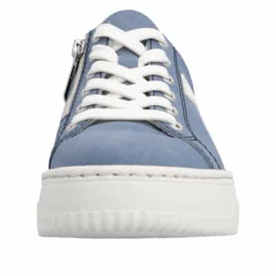 Rieker sneakers til dame i blå. Smarte sneakers, der forener komfort og funktion i et flot design. Skoen har både snørebånd og en funktionel lynlås, så den er let at komme i og tilpasse efter foden. Indvendigt mødes du af en blød og udtagelig indersål, som giver høj komfort gennem hele dagen. Ydersålen har et mønster, der giver øget stødabsorbering og skridsikkerhed.