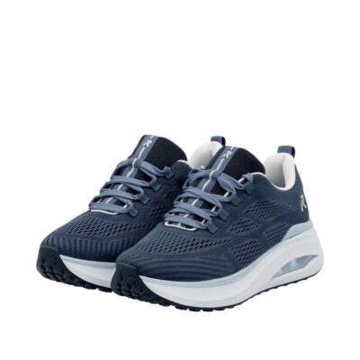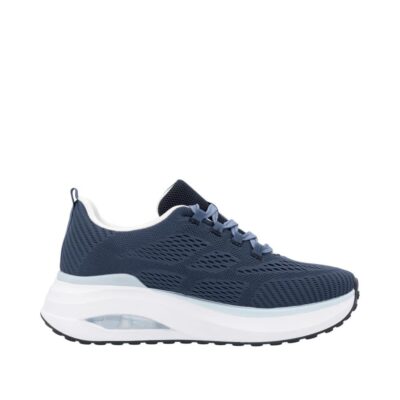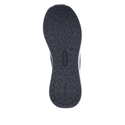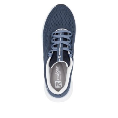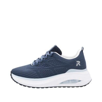 Rieker sneakers til dame i blå. Sporty og moderne sneakers i en dyb mørkeblå farve, perfekt til både hverdag og fritid. De blå snørebånd giver en fleksibel og tilpasset pasform, mens den bløde Rieker-Soft sål sikrer høj komfort og kan fjernes efter behov. Skoen har en chunky sål på ca. 5 cm med et Rieker Air vindue, der tilføjer et unikt design samt stødabsorberende egenskaber for øget komfort. Ydersålen har et godt mønster under sålen, der giver øget støtte og skridsikkerhed.