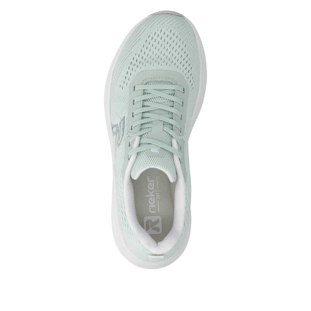 Rieker sneakers til dame i grøn. Stilfulde sneakers i et moderne design med et sporty look og god komfort. Skoen har snørebånd foran, så pasformen kan justeres og tilpasses foden. Indvendigt er modellen udstyret med en blød og udtagelig indersål, som giver behagelig komfort dagen lang. Den 4,5 cm høje ydersål giver øget stødabsorbering og gør hvert skridt mere behageligt hele dagen.