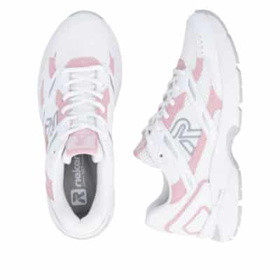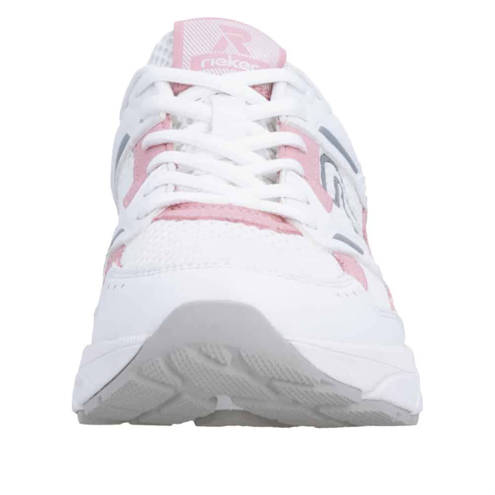 Rieker sneakers til dame i hvid. Sporty og stilfulde sneakers, der er designet med fokus på komfort og funktion i hverdagen. Snørebåndene gør det nemt at justere pasformen, så skoen sidder behageligt på foden. Indvendigt finder du en blød og udtagelig indersål, mens ekstra bredde (G) sikrer god rummelighed og komfort dagen igennem. Ydersålen har et praktisk mønster, som giver øget støtte og god skridsikkerhed.