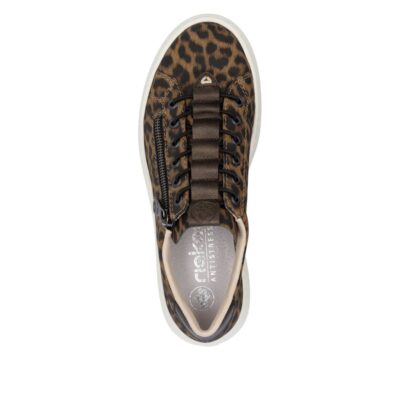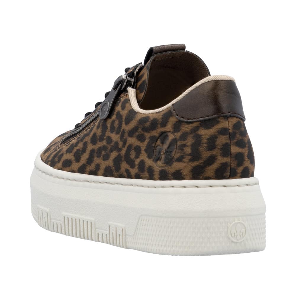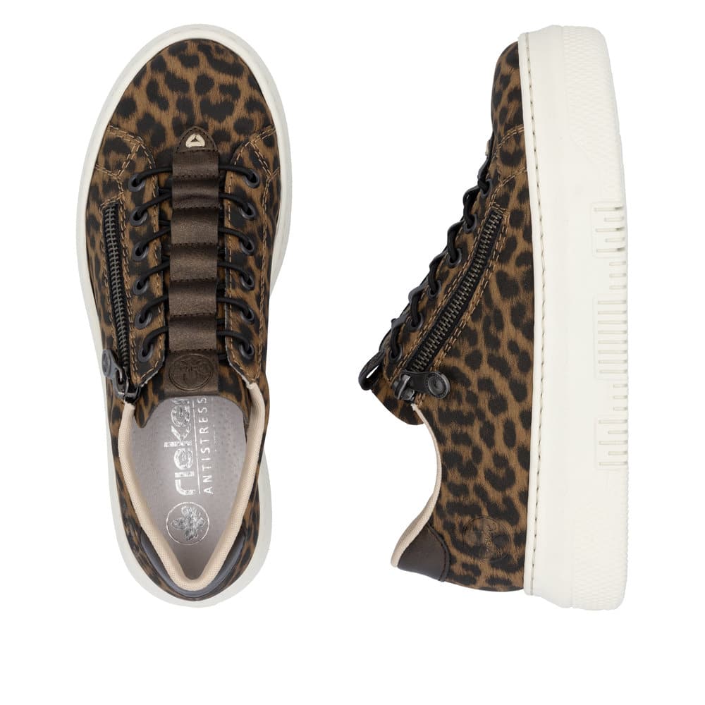 Rieker sneakers til dame i leopard med elastik og lynlås samt stødabsorberende plateausål på 4,5 cm