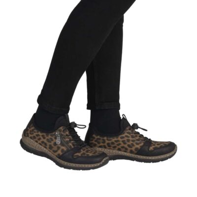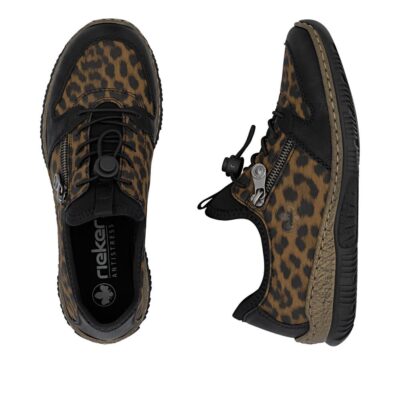 Rieker sneakers til dame i leopard med elastik lukning og pynte lynlås