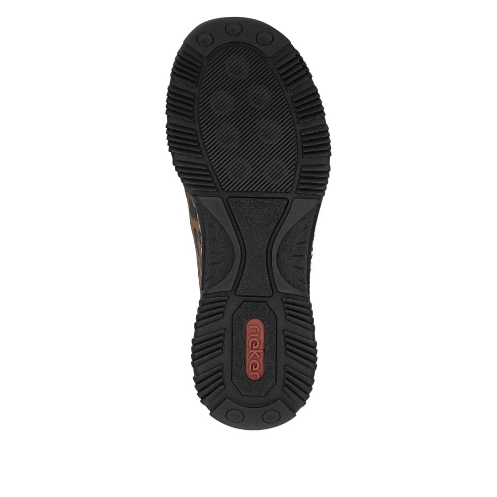 Rieker sneakers til dame med leopardprint. Med sit trendy leopardprint og pynte-lynlås er denne sneakers et stilfuldt valg til hverdagen. Den elastiske front gør det nemt at tage skoen af og på, og samtidig sikrer den en god og fleksibel pasform. Den bløde Memosoft indersål giver høj komfort, mens den mønstrede ydersål øger både stødabsorbering og skridsikkerhed.