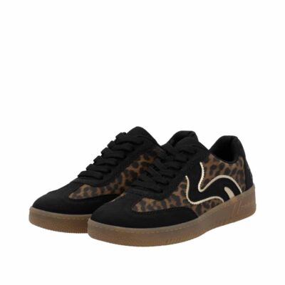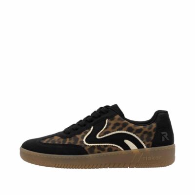 Rieker sneakers til dame i leopard. Stilfulde sneakers med leopardmønster og sorte detaljer, der giver skoen et trendy look. Skoen er designet med snørebånd for en personlig pasform, og den bløde udtagelige Rieker Soft indersål giver optimal komfort. Takket være den lette og fleksible opbygning samt den stødabsorberende sål, får du en sko, der føles behagelig hele dagen.