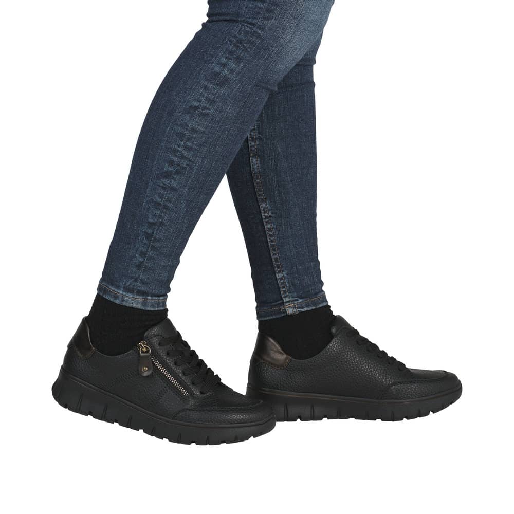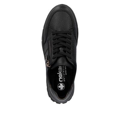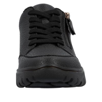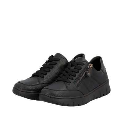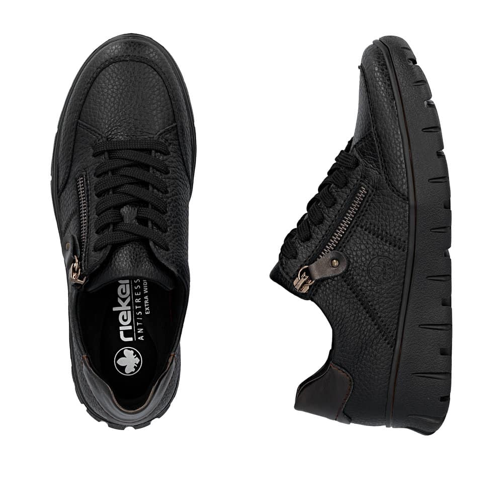 Rieker sneakers til dame i sort skind med snørebånd og funktionel lynlås samt udtagelig sål med ekstra bredde H