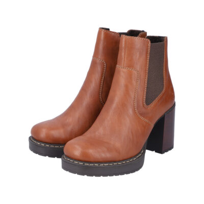 Rieker støvle i brun til dame Y4151-22. Lækker let foret støvle i den fineste brune farve, med flotte detaljer. Modellen har lynlås på indersiden samt elastik på ydersiden, så du nemt og hurtigt kan komme i/af støvlen. Modellen er dejlig blød og fleksibel, samt har en stødabsorberende bund, hvilket giver en god pasform og komfort for dine fødder. Modellen har en hælhøjde på ca. 8-9cm.