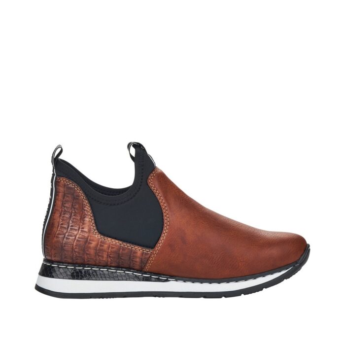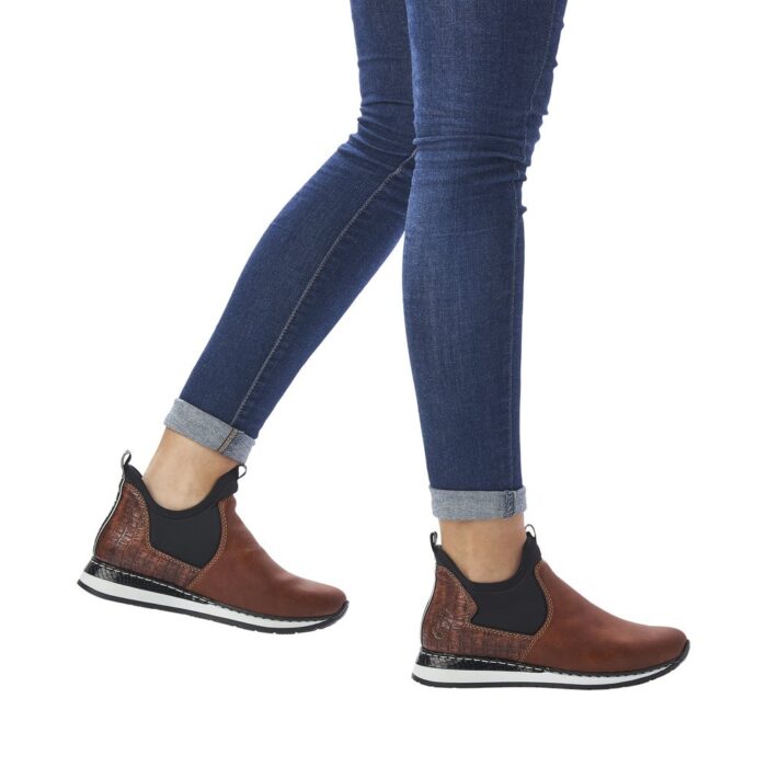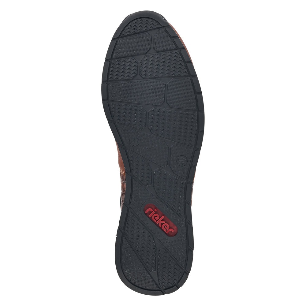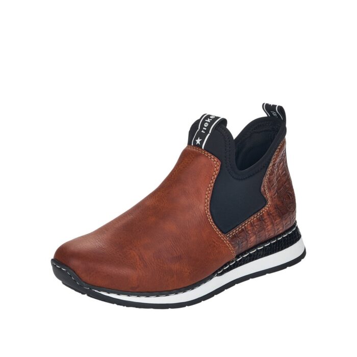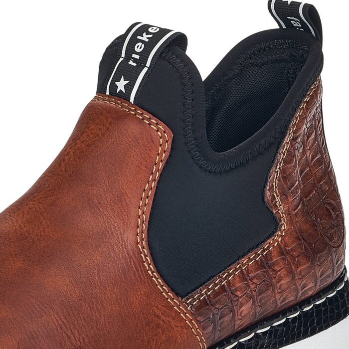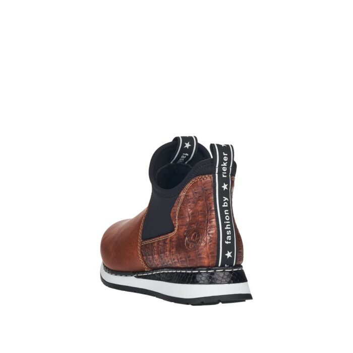 X3063-24 Rieker Støvle i Brun til Dame. Super flot støvle, i et spændende design. modellen har en masse flotte detaljer, rundt på hele skoen. Støvlen er let, samt størrelses tilsvarende og har en udtagelig sål, som let kan udskiftes ved behov for dette.