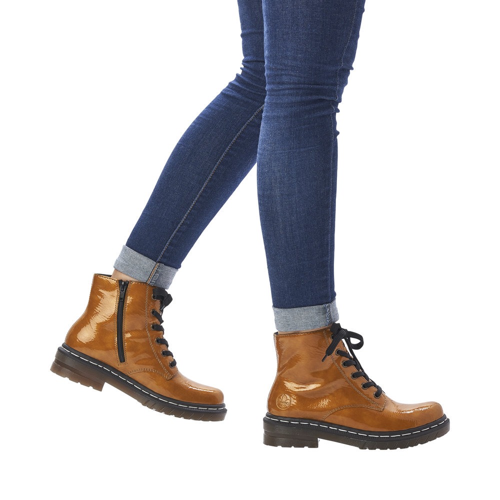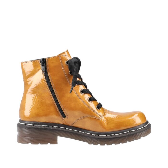 76240-68 Rieker Støvle i Gul til Dame. Let og lækker støvle, i et fedt design. Modellen har en overdel i en flot gul farve, med et lak look. Støvlen er let foret, samt almindelig i størrelsen. MODELLEN ER KUN I STR. 38