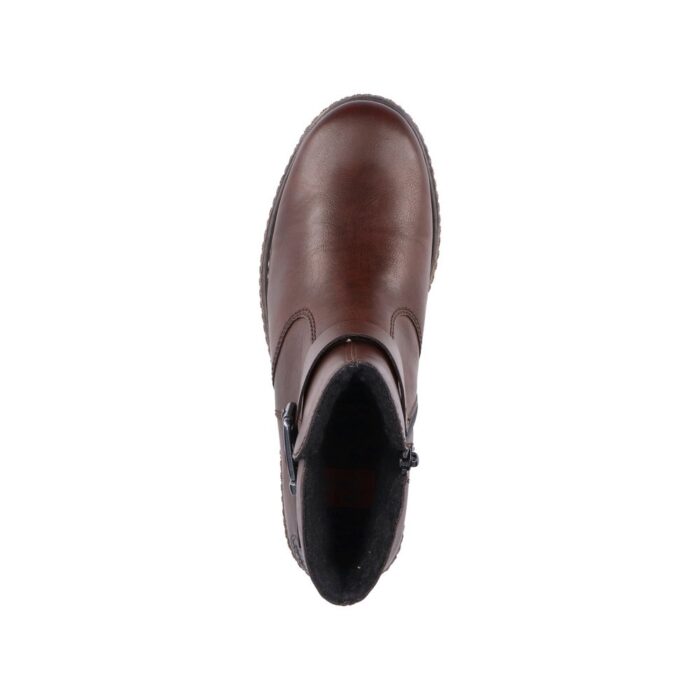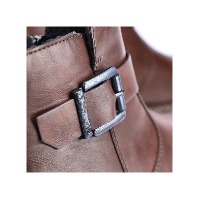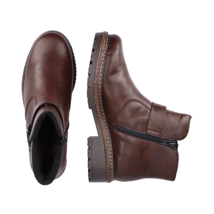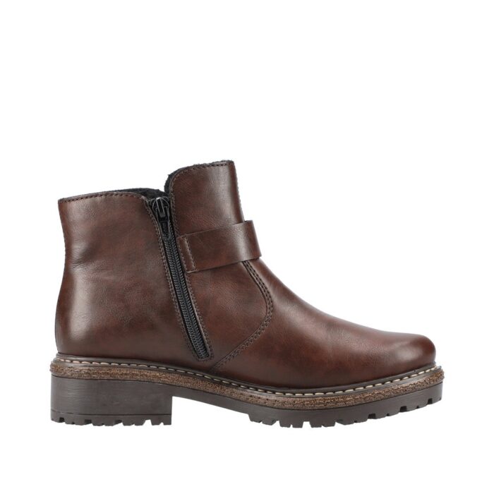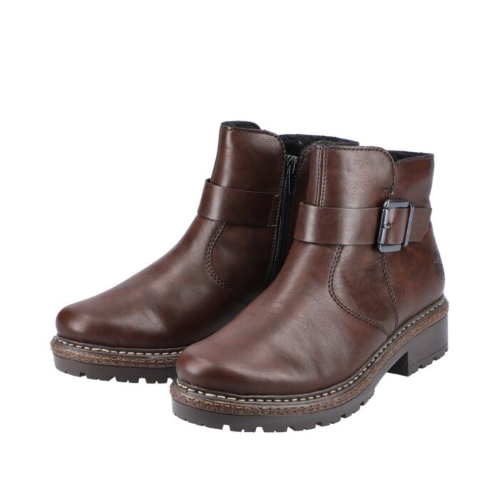 Z3468-25 Rieker Støvle i mørkebrun til Dame. Dejlig let og varm foret støvle, i et flot design. Modellen har et moderne og tidsløst design, samt en lynlås på indersiden, som gør det let at komme i/af støvlen.