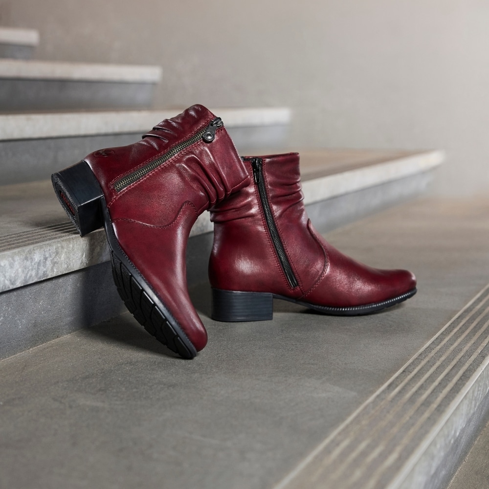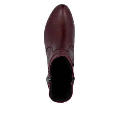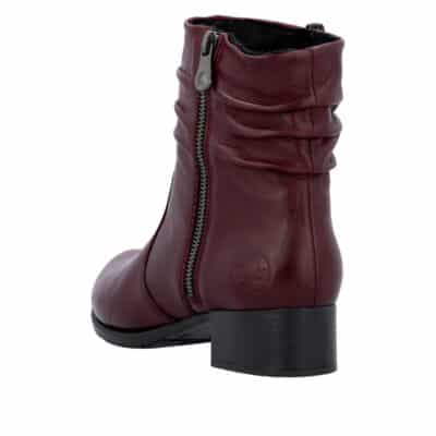Rieker støvle til dame i bordeaux med skindoverdel og lynlås i begge sider samt let foring