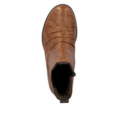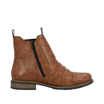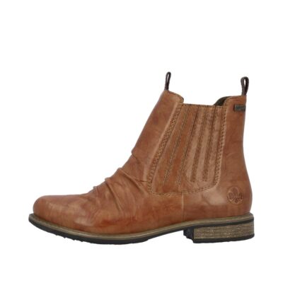 Rieker støvle til dame i brun. Denne moderne støvle i brun kombinerer praktisk funktion med et elegant design. De rynkede detaljer giver et stilfuldt udtryk, mens overdelen i skind giver en behagelig fornemmelse. Modellen er udstyret med elastik på ydersiden og lynlås på indersiden, der gør den nem at tage af og på. Indvendigt finder du en let foring og en blød, udtagelig indersål med ekstra bredde H for maksimal komfort. Rieker Tex gør støvlen kraftigt vandafvisende. Hælen på 2,5 cm fuldender looket, og den stødabsorberende ydersål med mønster giver ekstra støtte og skridsikkerhed i hvert skridt.