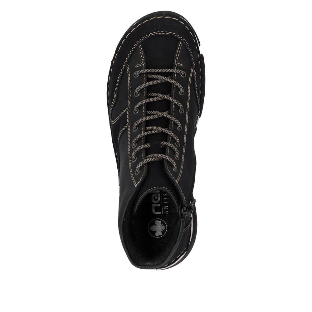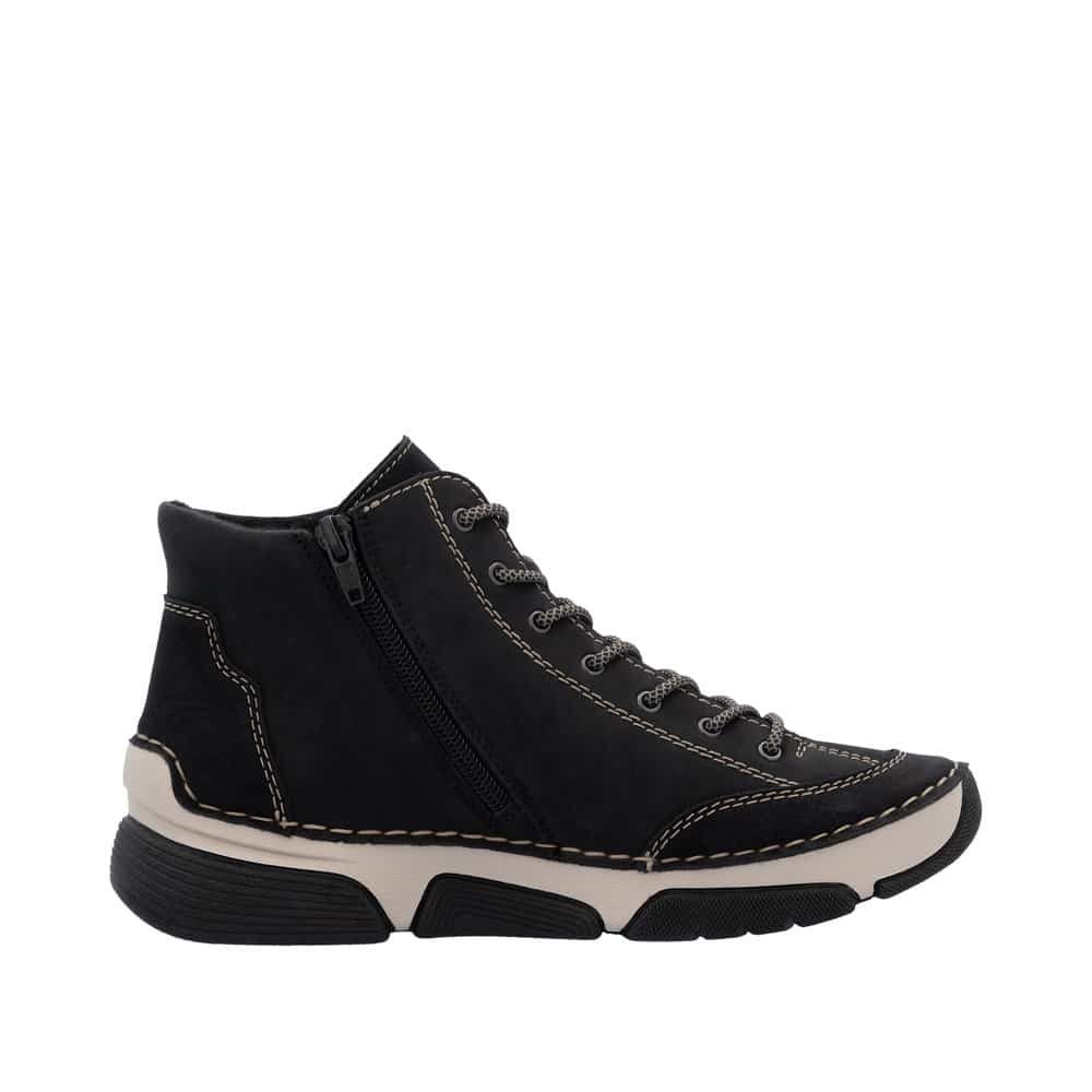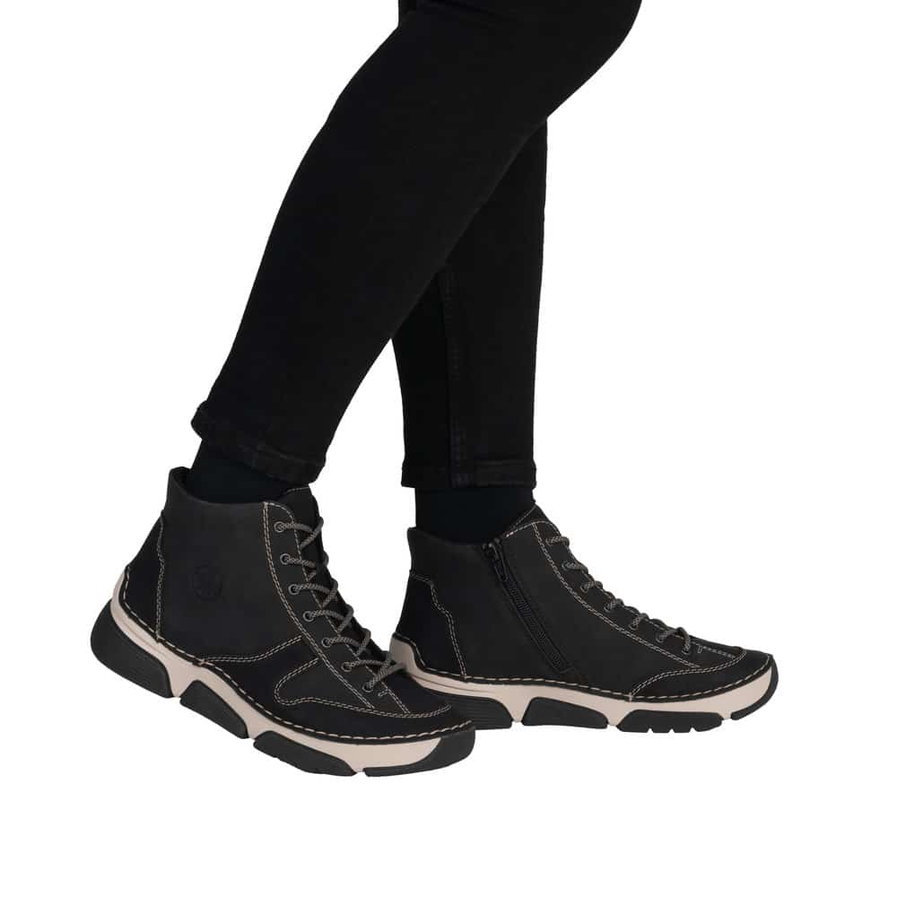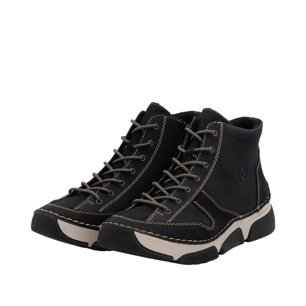 Rieker støvle til dame i sort med lynlås og snørebånd samt let foring