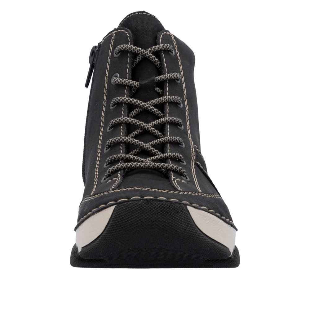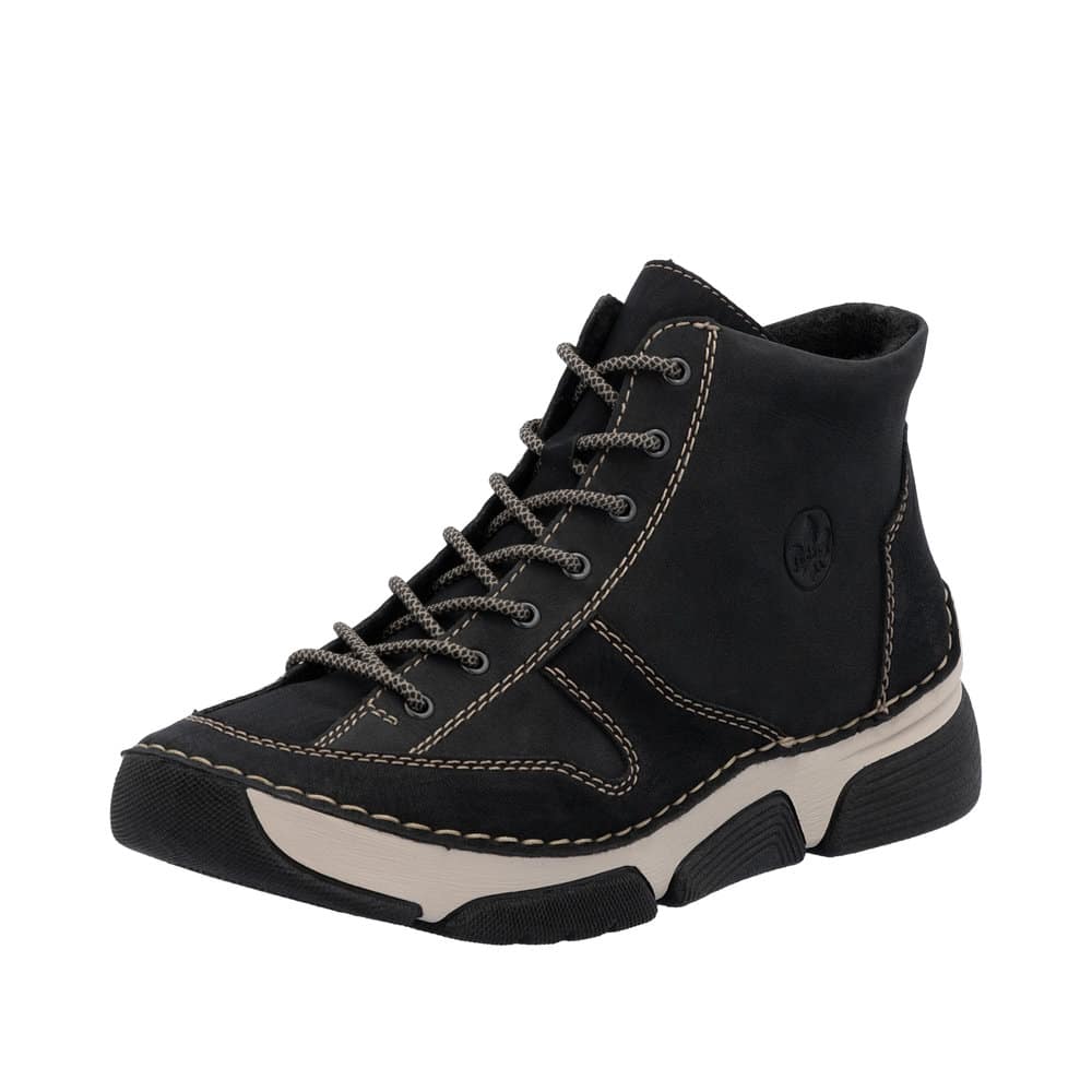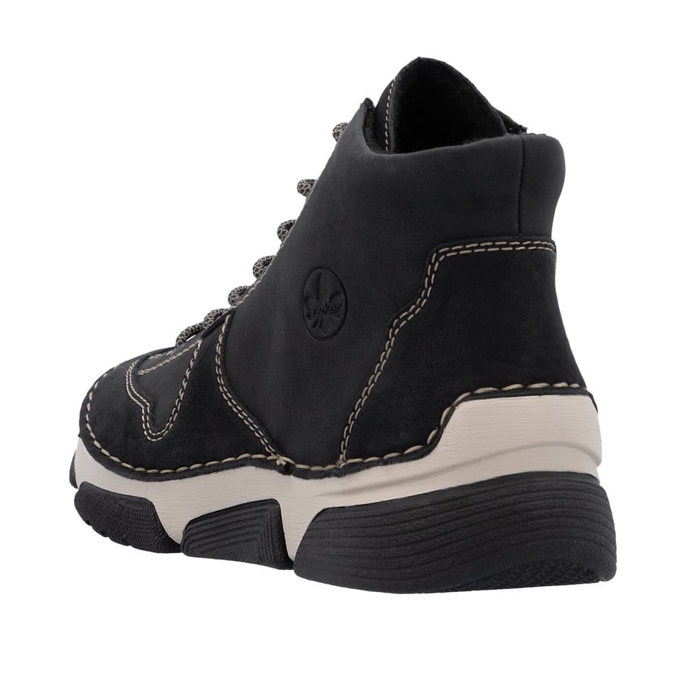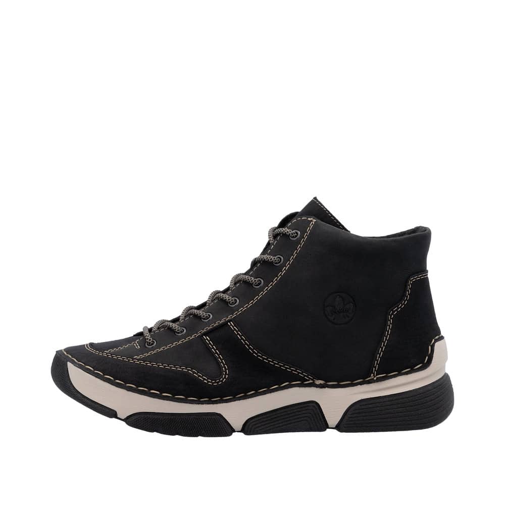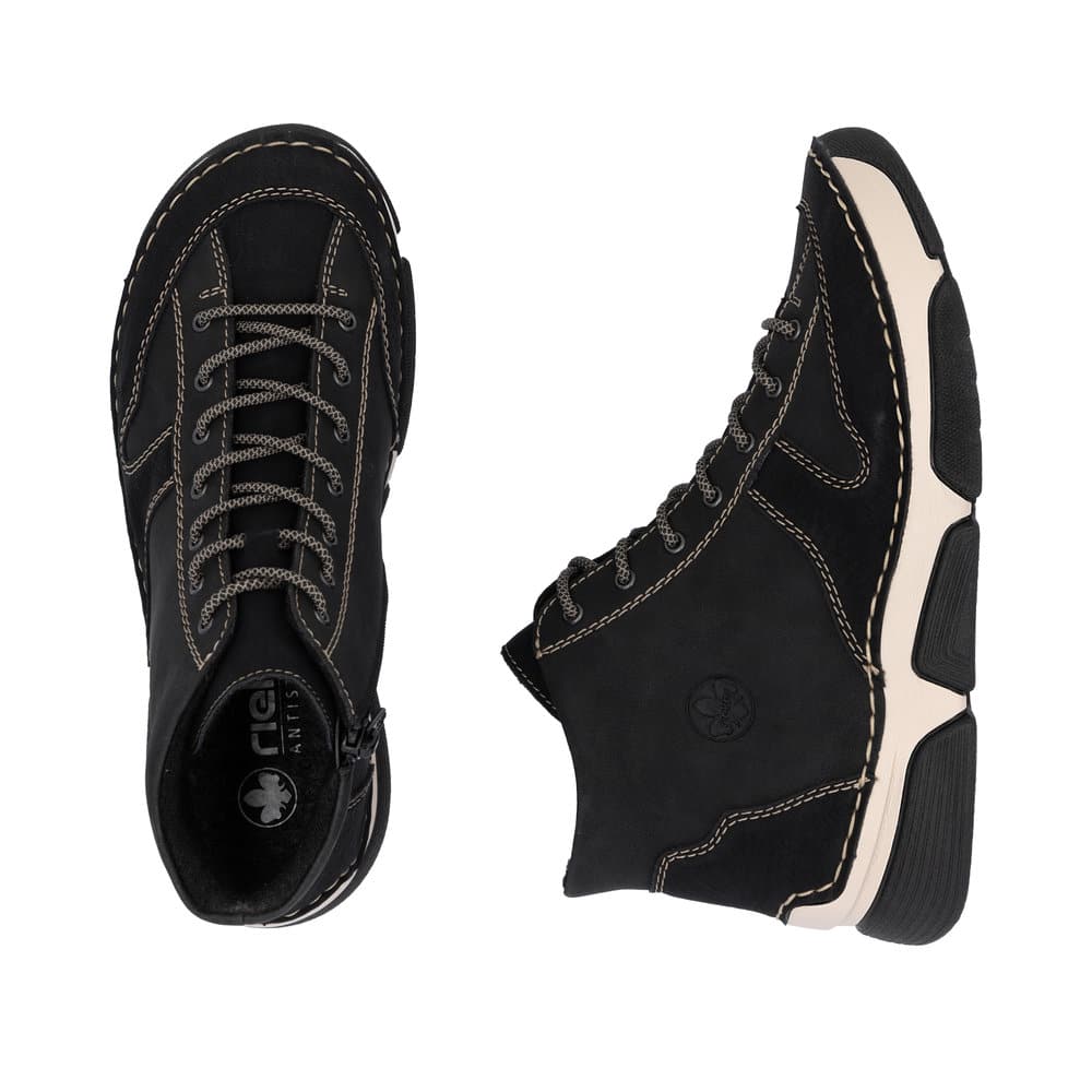 Rieker støvle til dame i sort med lynlås og snørebånd samt let foring