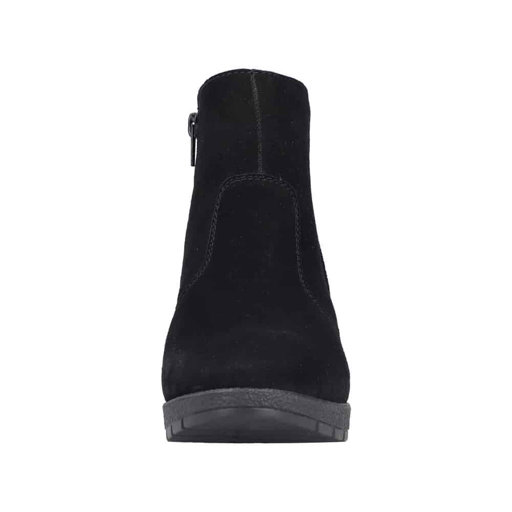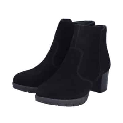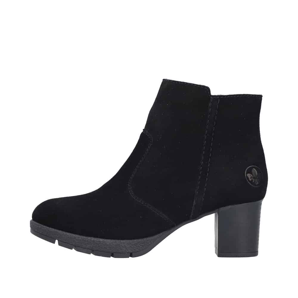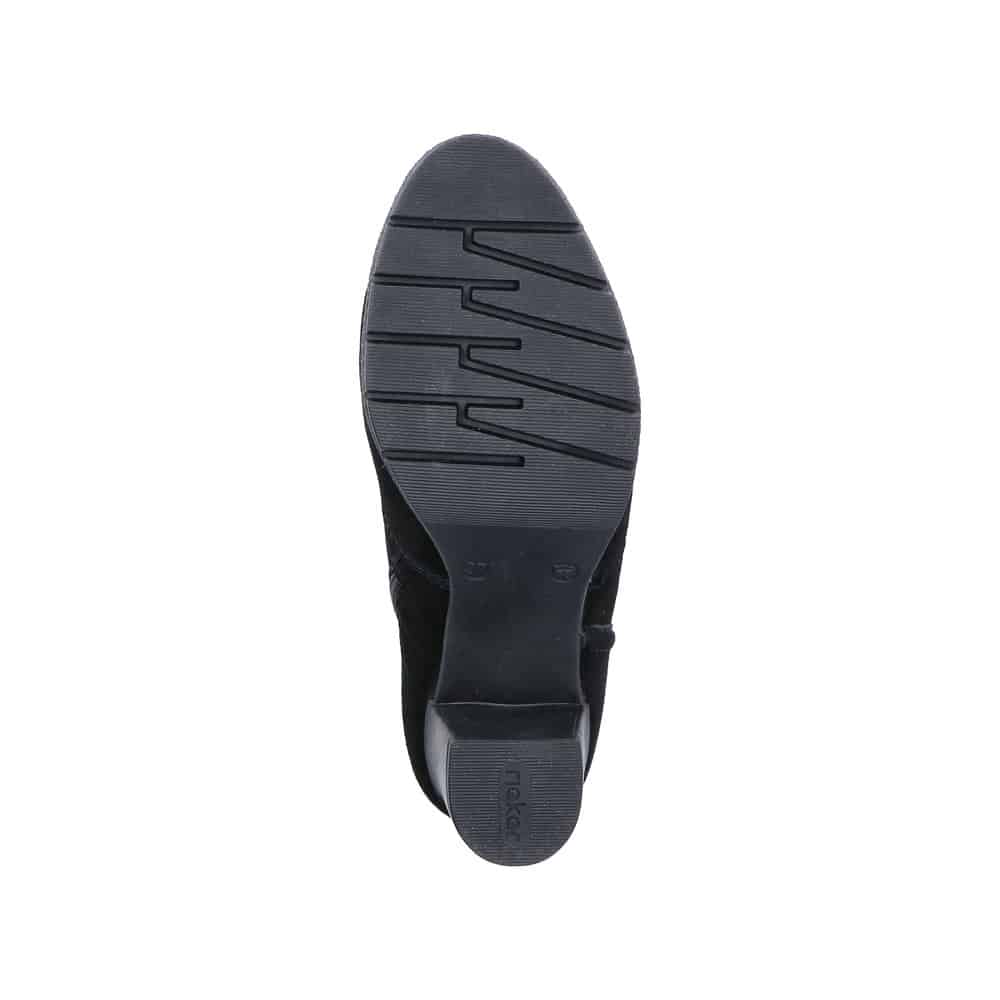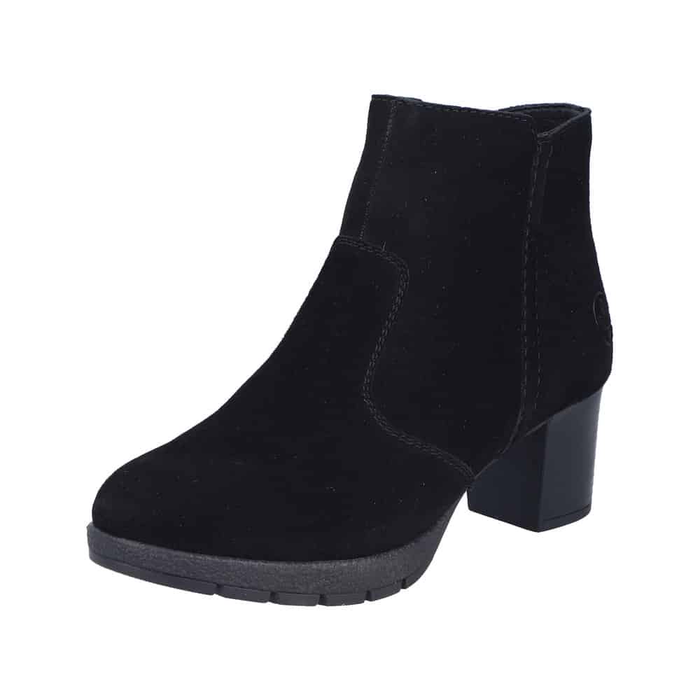 Rieker støvle til dame i sort. Flot vinterstøvle i sort med klassisk design og overdel i blødt ruskind. Støvlen har en funktionel lynlås på indersiden, som gør den nem at komme i og af. Indvendigt bliver du mødt af en varm foring, der holder fødderne lune, samt en blød og udtagelig indersål, som giver optimal komfort. Støvlen er lavet med ekstra bredde G, der sikrer en rummelig og god pasform. Den ca. 6 cm høje blokhæl giver et elegant løft, mens ydersålen med stødabsorbering og et godt mønster giver god komfort og øget skridsikkerhed gennem dagen.