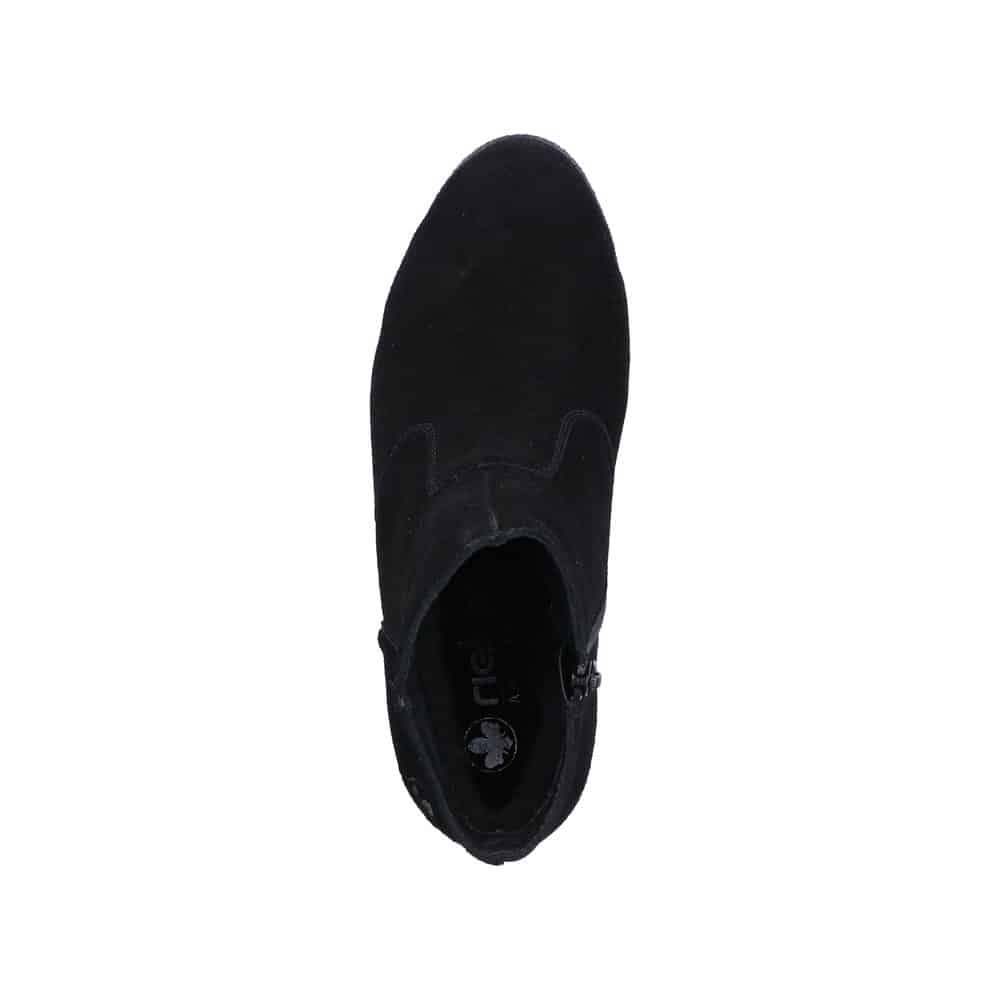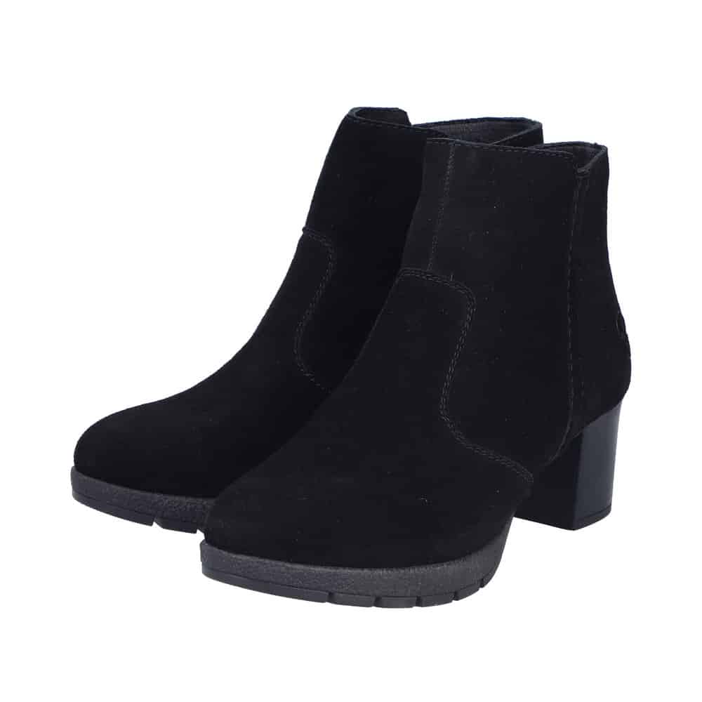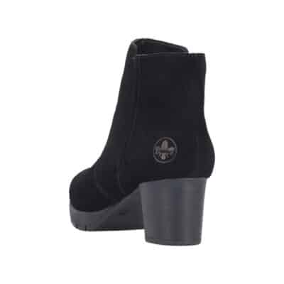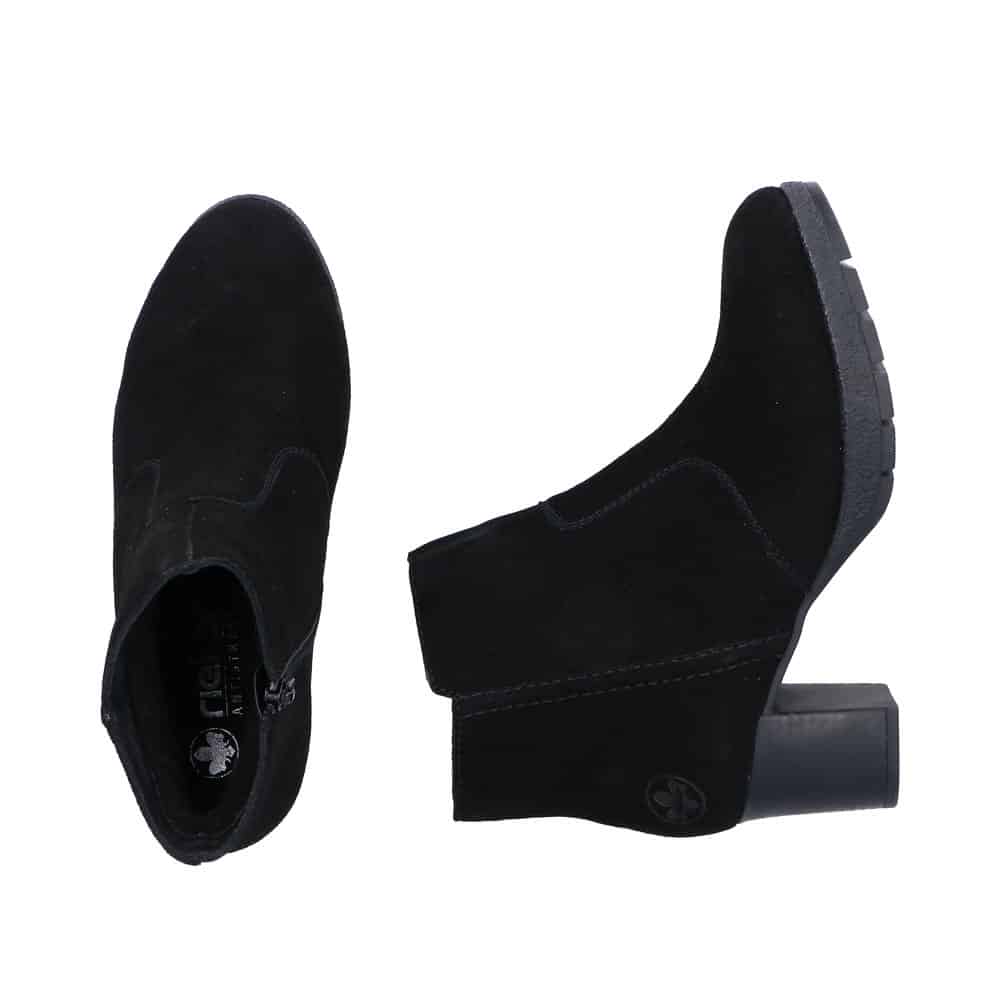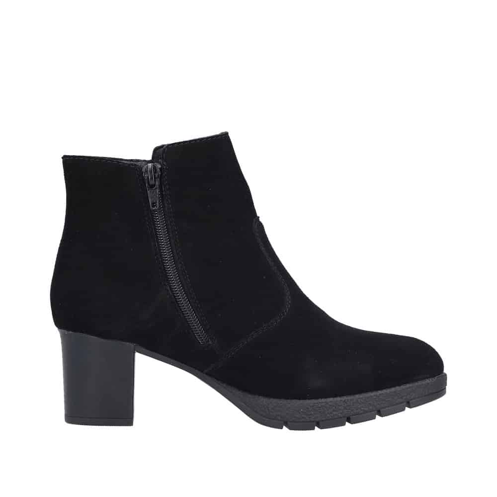 Rieker støvle til dame i sort. Flot vinterstøvle i sort med klassisk design og overdel i blødt ruskind. Støvlen har en funktionel lynlås på indersiden, som gør den nem at komme i og af. Indvendigt bliver du mødt af en varm foring, der holder fødderne lune, samt en blød og udtagelig indersål, som giver optimal komfort. Støvlen er lavet med ekstra bredde G, der sikrer en rummelig og god pasform. Den ca. 6 cm høje blokhæl giver et elegant løft, mens ydersålen med stødabsorbering og et godt mønster giver god komfort og øget skridsikkerhed gennem dagen.