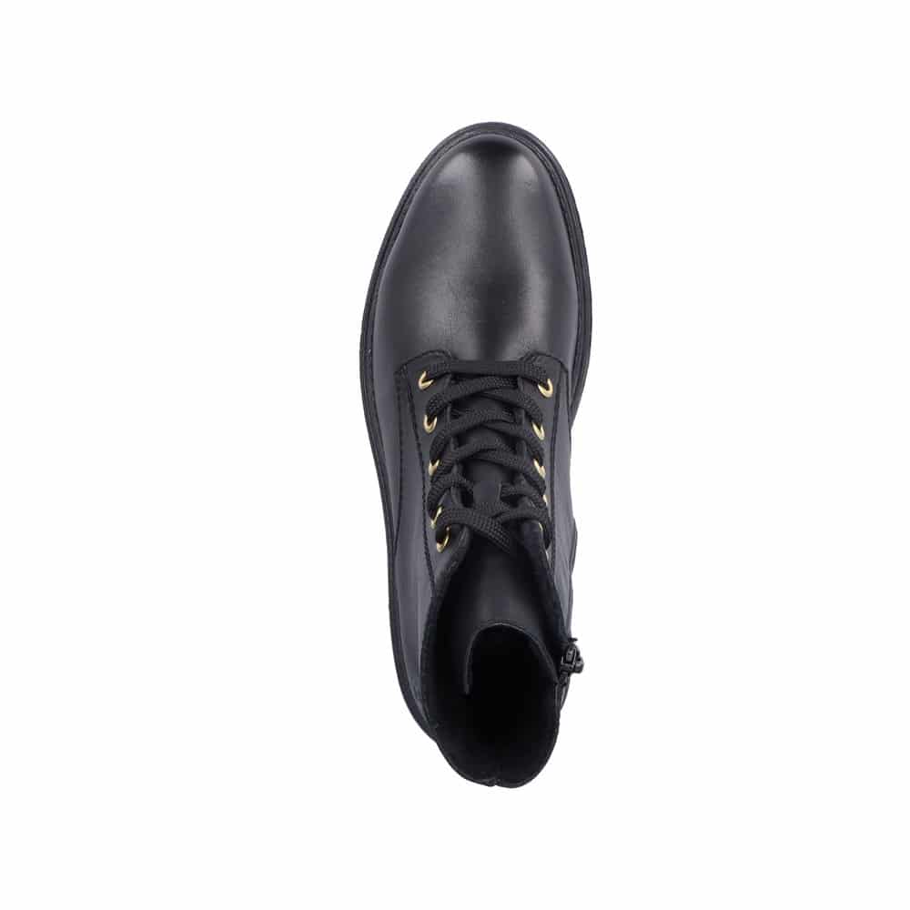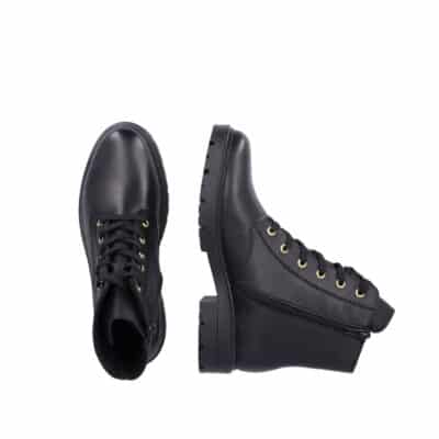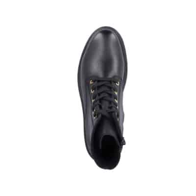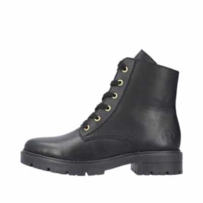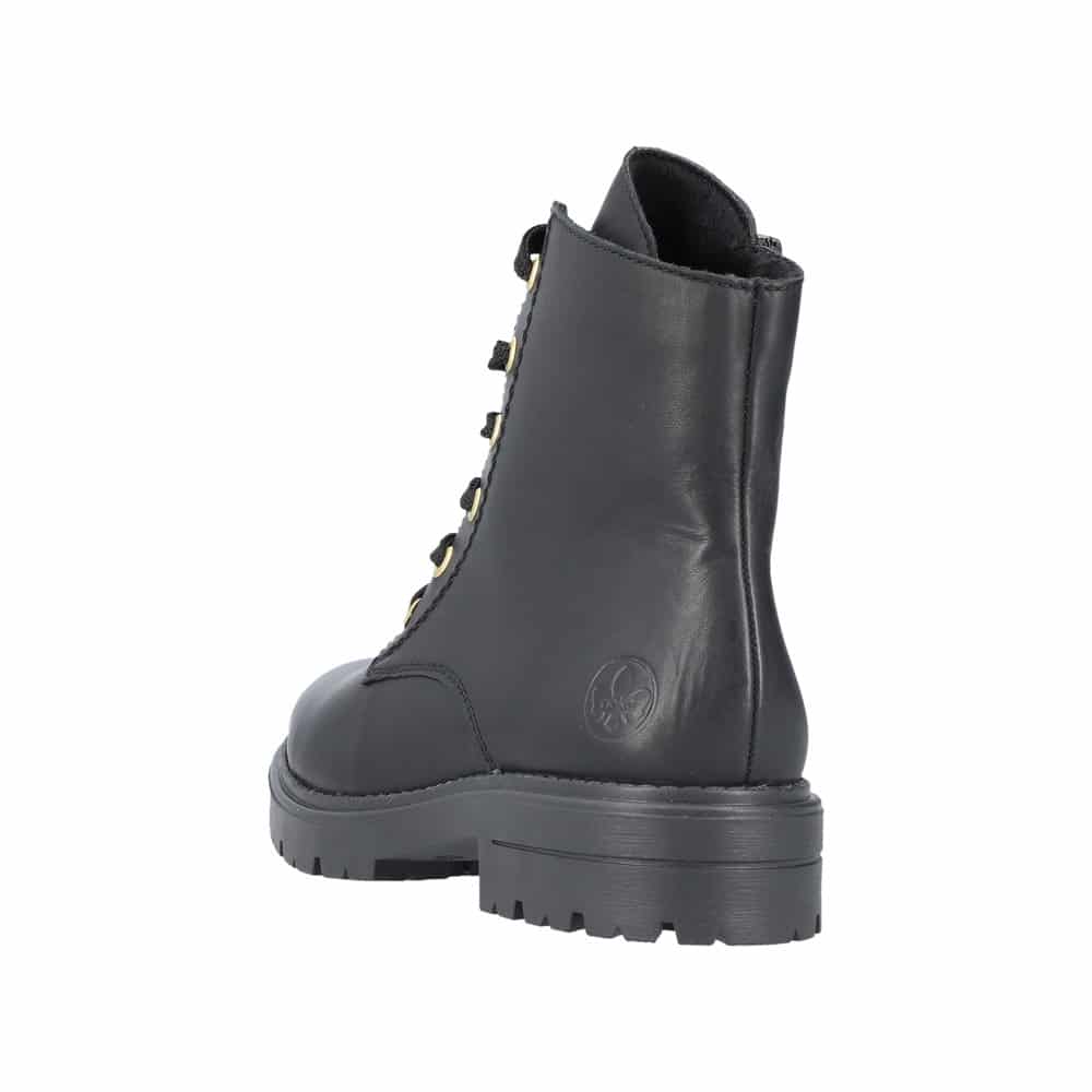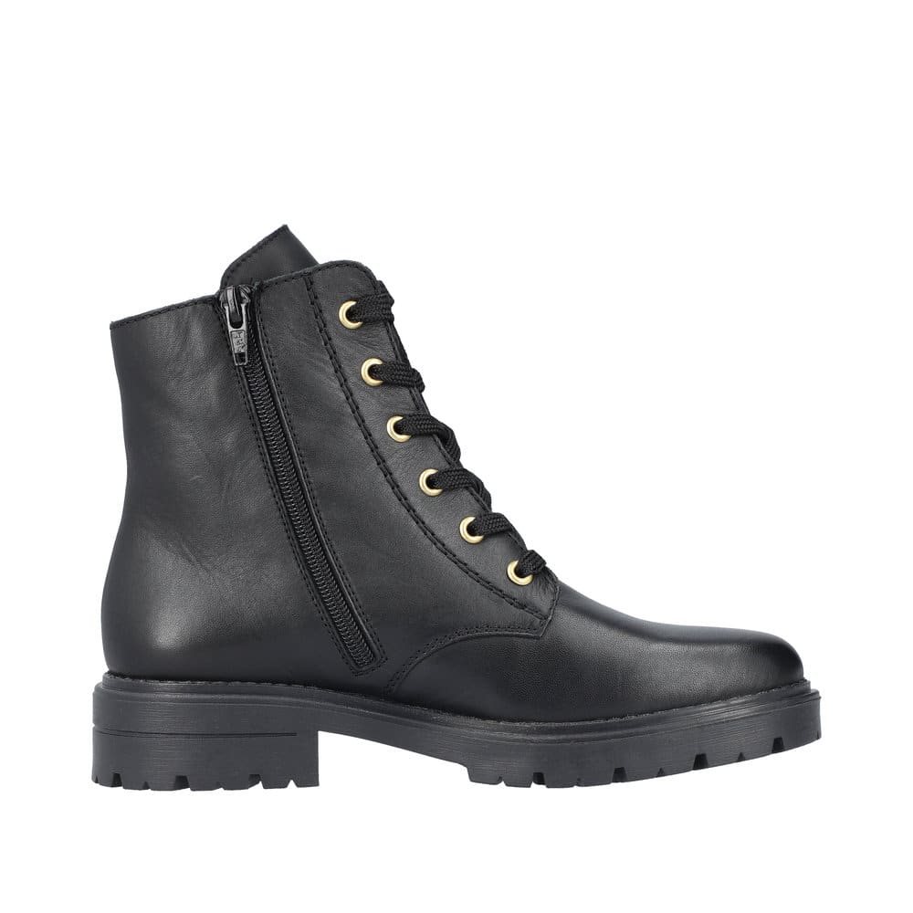 Rieker støvle til dame i sort. Smart støvle med flot design og funktionelle detaljer. Snørebånd og lynlås gør den nem at tage på og giver mulighed for en tilpasset pasform. Indvendigt mødes du af en let foring og en blød sål, som giver god komfort hele dagen. Den mønstrede ydersål øger både stødabsorbering og skridsikkerhed.